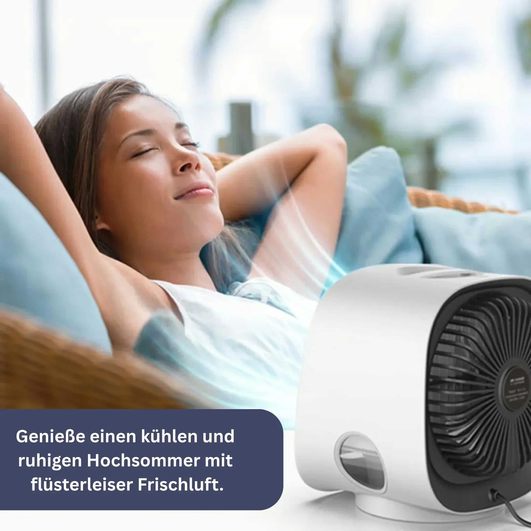 Er bietet gezielte Abkühlung und ist ideal für kleine persönliche Bereiche wie deinen Schreibtisch, Nachttisch oder dein Arbeitszimmer. Er ersetzt keine Klimaanlage, aber sorgt für sofortige Erfrischung in einem begrenzten Bereich.