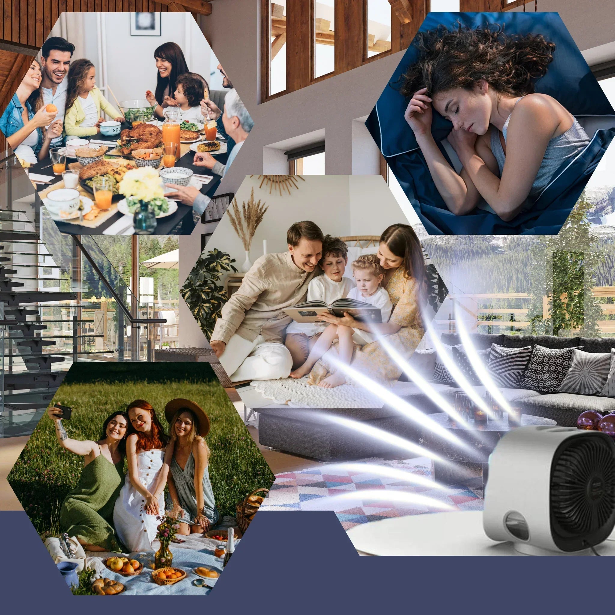 Der Mini-Luftkühler schafft die perfekte Umgebung für ruhigen, erholsamen Schlaf.
