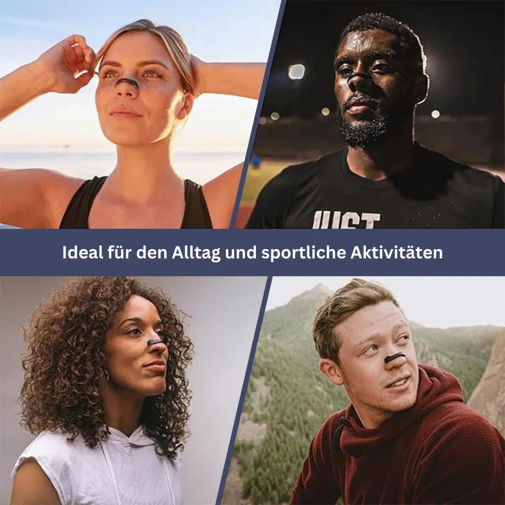 Der Nasenpflaster-Dilatator erweitert sanft die Nasenhöhle, optimiert den Luftstrom und unterstützt eine freiere Atmung.