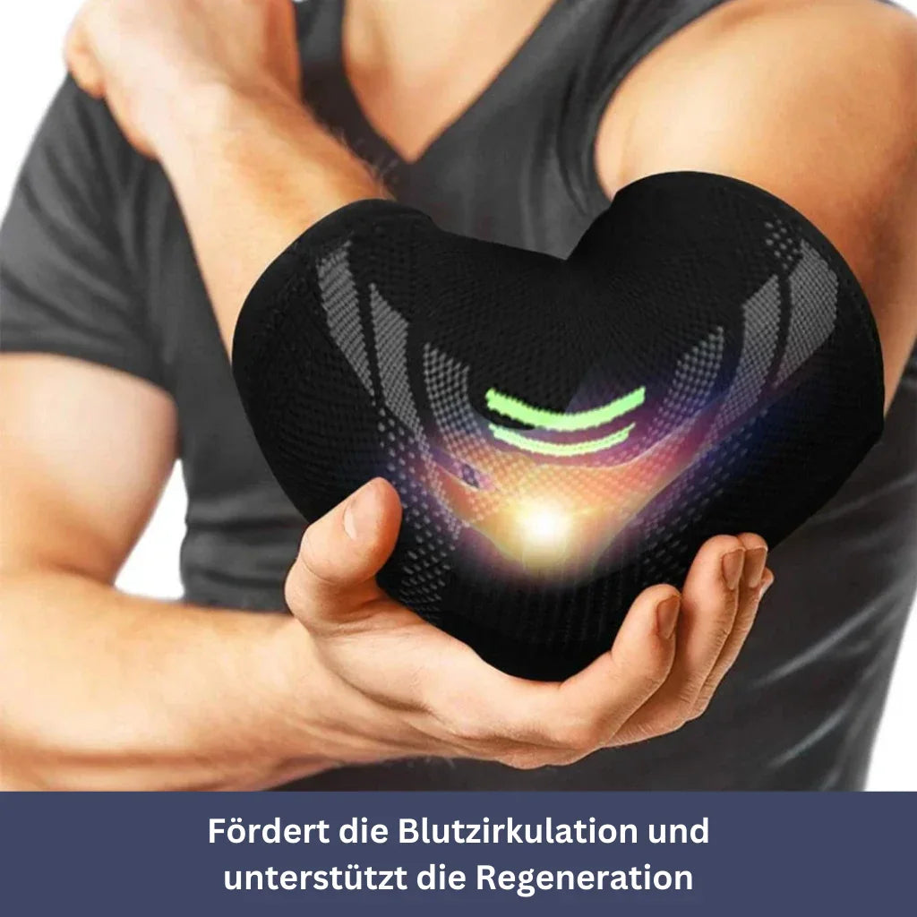 Die Bandage übt sanften Druck auf das Ellenbogengelenk aus, fördert die Blutzirkulation und unterstützt die Regeneration.