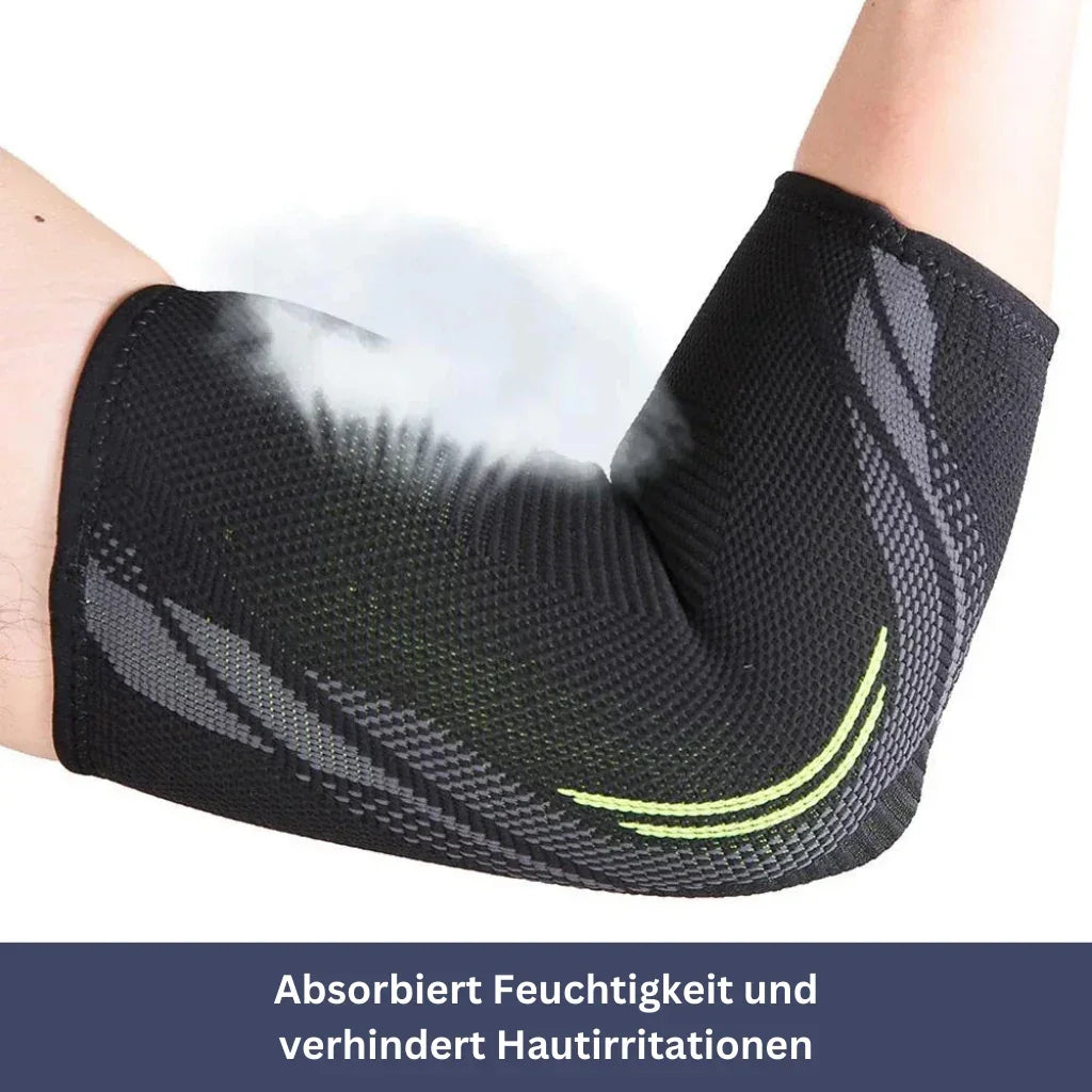 Die gezielte Kompression lindert Schmerzen bei Tennis- und Golferellenbogen, verbessert die Blutzirkulation und unterstützt die Heilung.