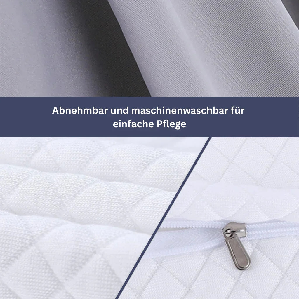 Das orthopädische Kissen von GesundPur kommt mit einem doppelt atmungsaktiven Kissenbezug, der für optimale Luftzirkulation sorgt und nächtliches Schwitzen verhindert.