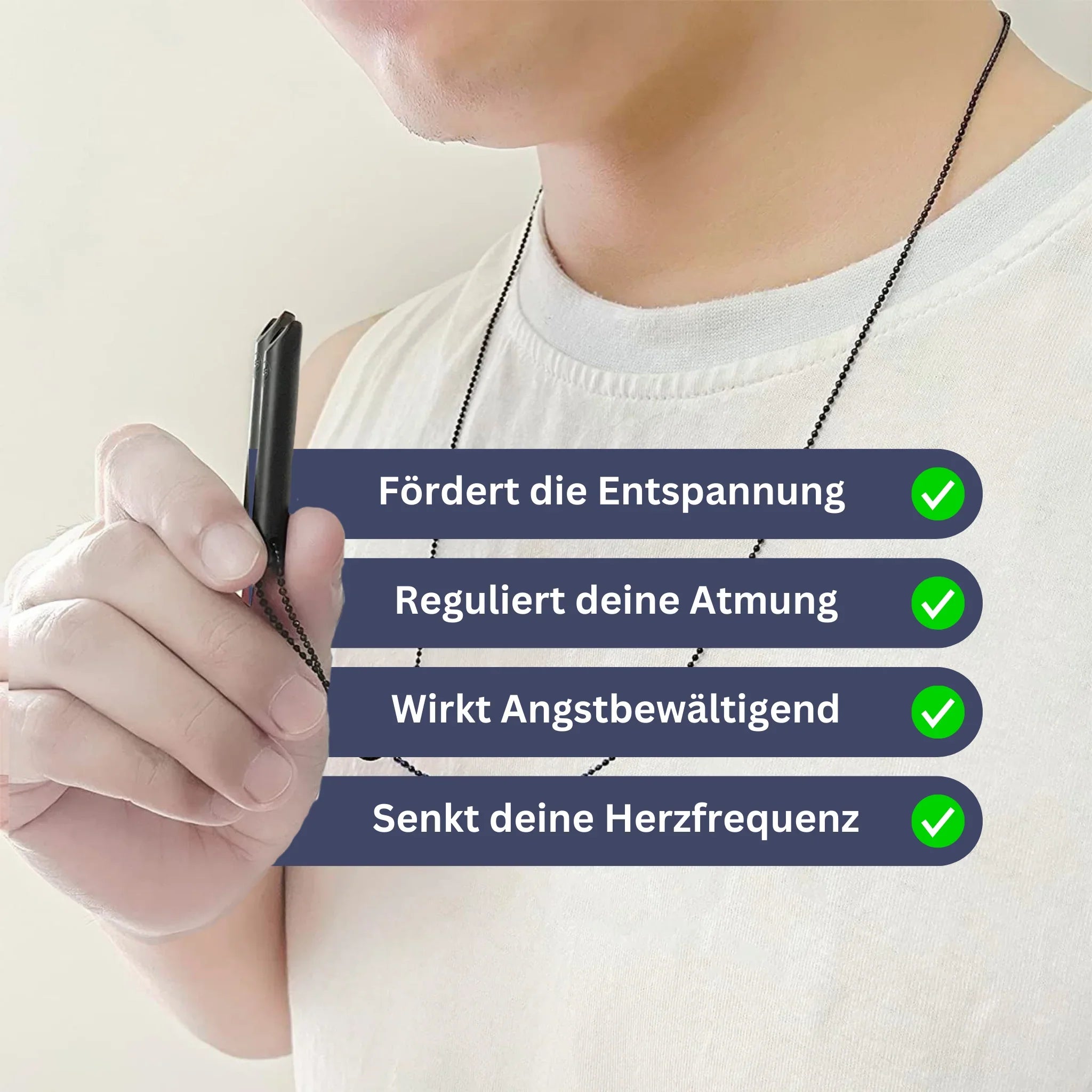 Die Anwendung der VagoRelax Pfeife reguliert deine Atmung und senkt die Herzfrequenz.