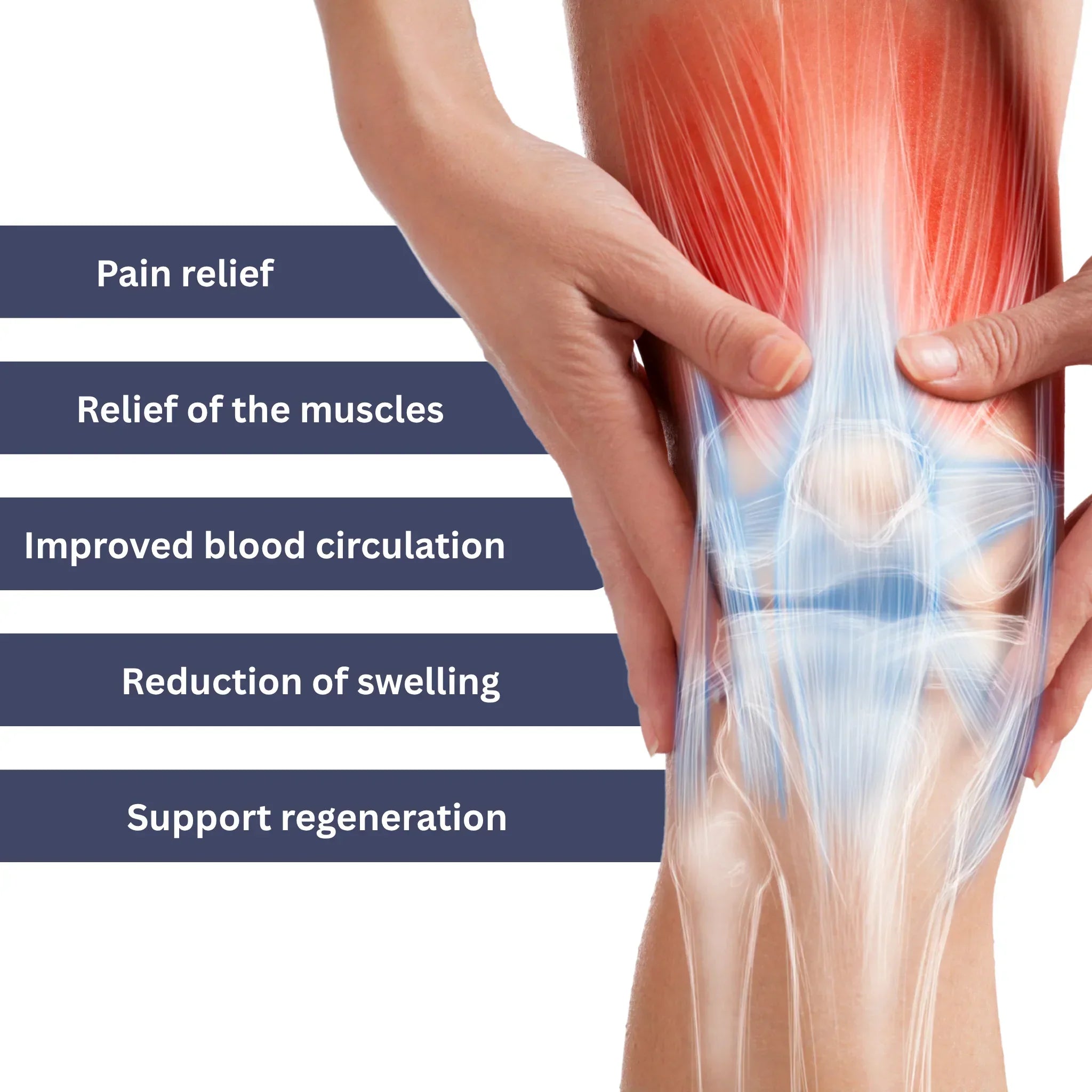It provides support for conditions like osteoarthritis, sprains, ligament tears, tendonitis, swelling, and aids recovery after injuries or surgeries.