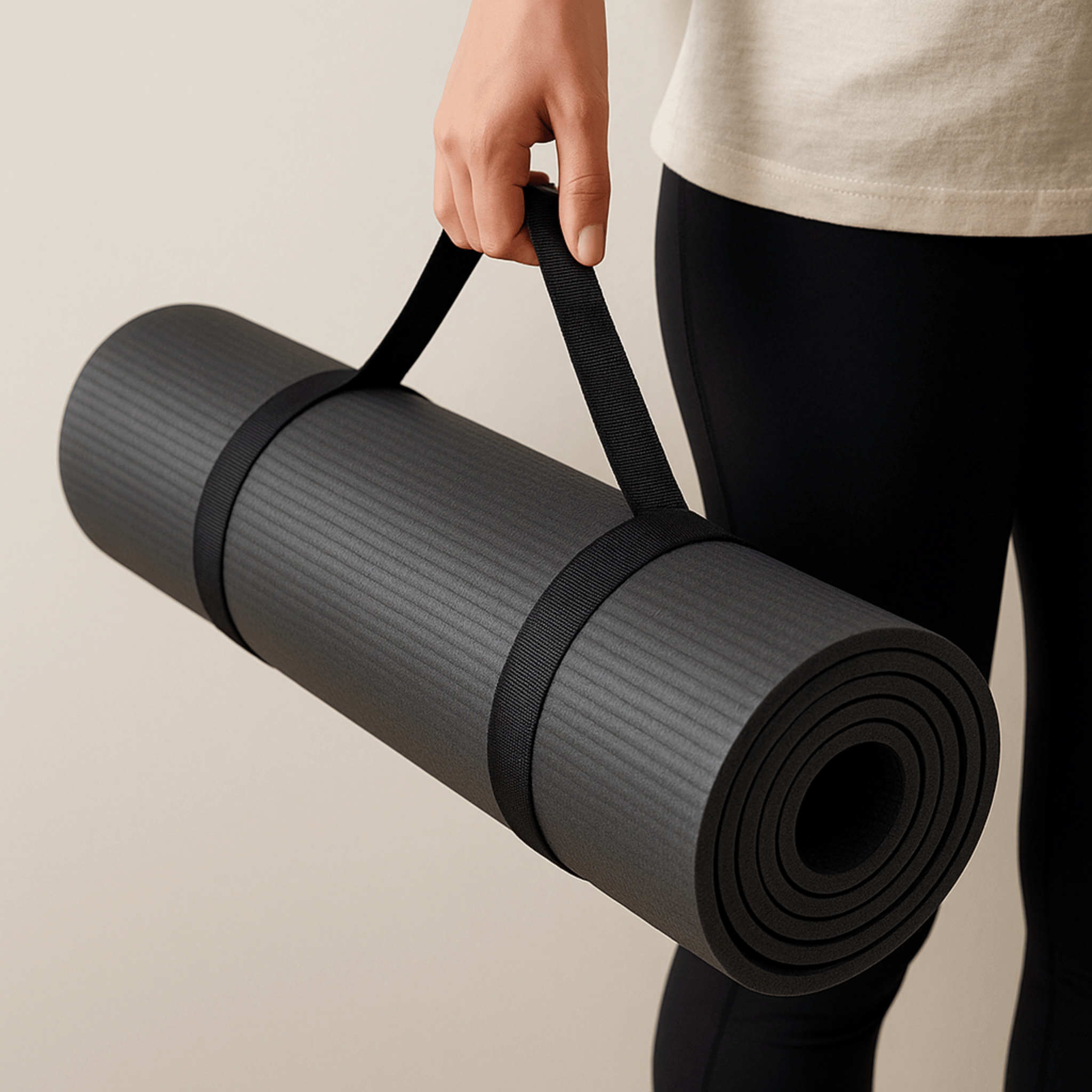 Mit dem Tragegurt ist meine Matte immer gut aufgerollt und bereit für mein Training. Der Transport zum Studio ist dank des Gurtes super einfach. Eine tolle Matte für Yoga und Fitness!