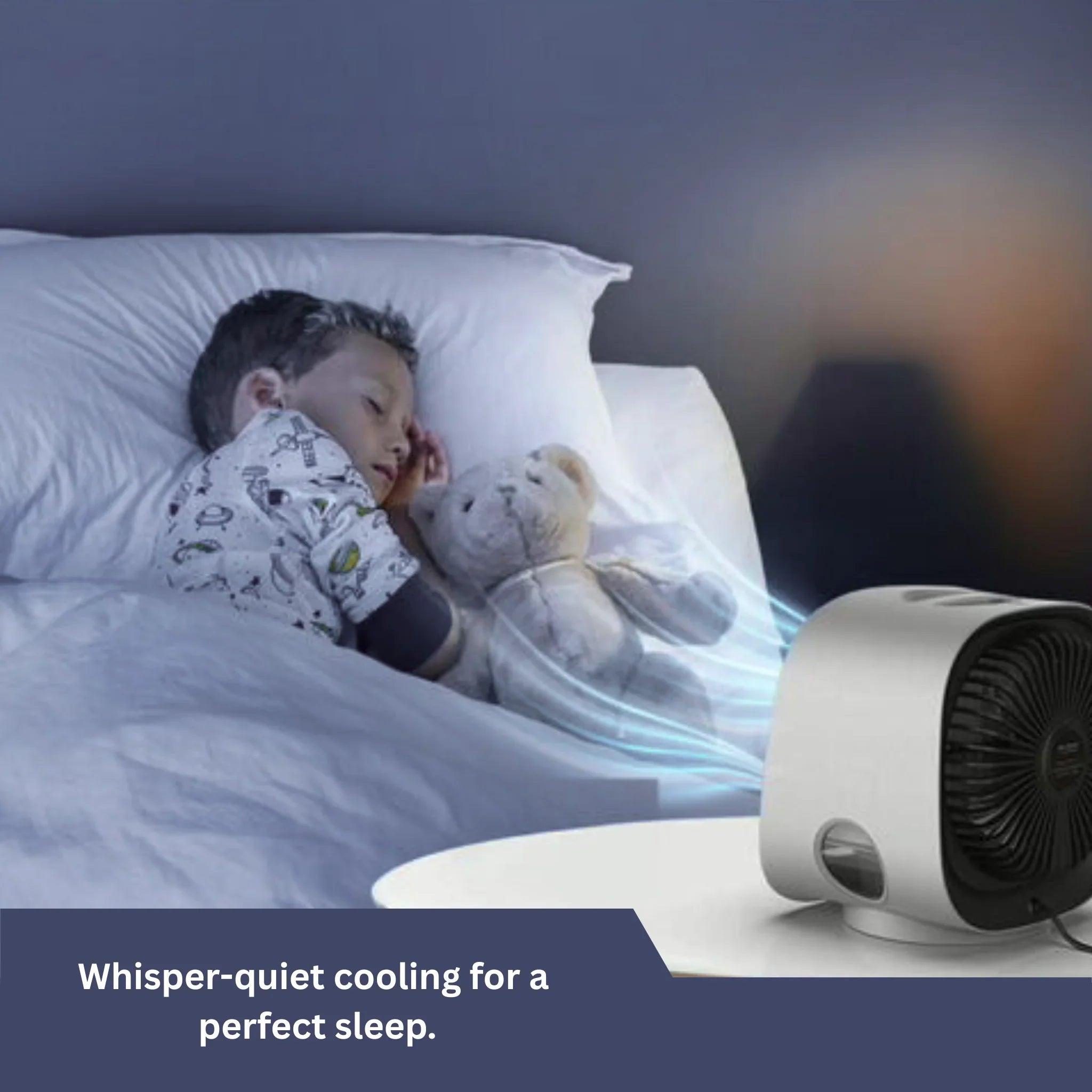 The mini air cooler creates the perfect environment for peaceful, restful sleep.