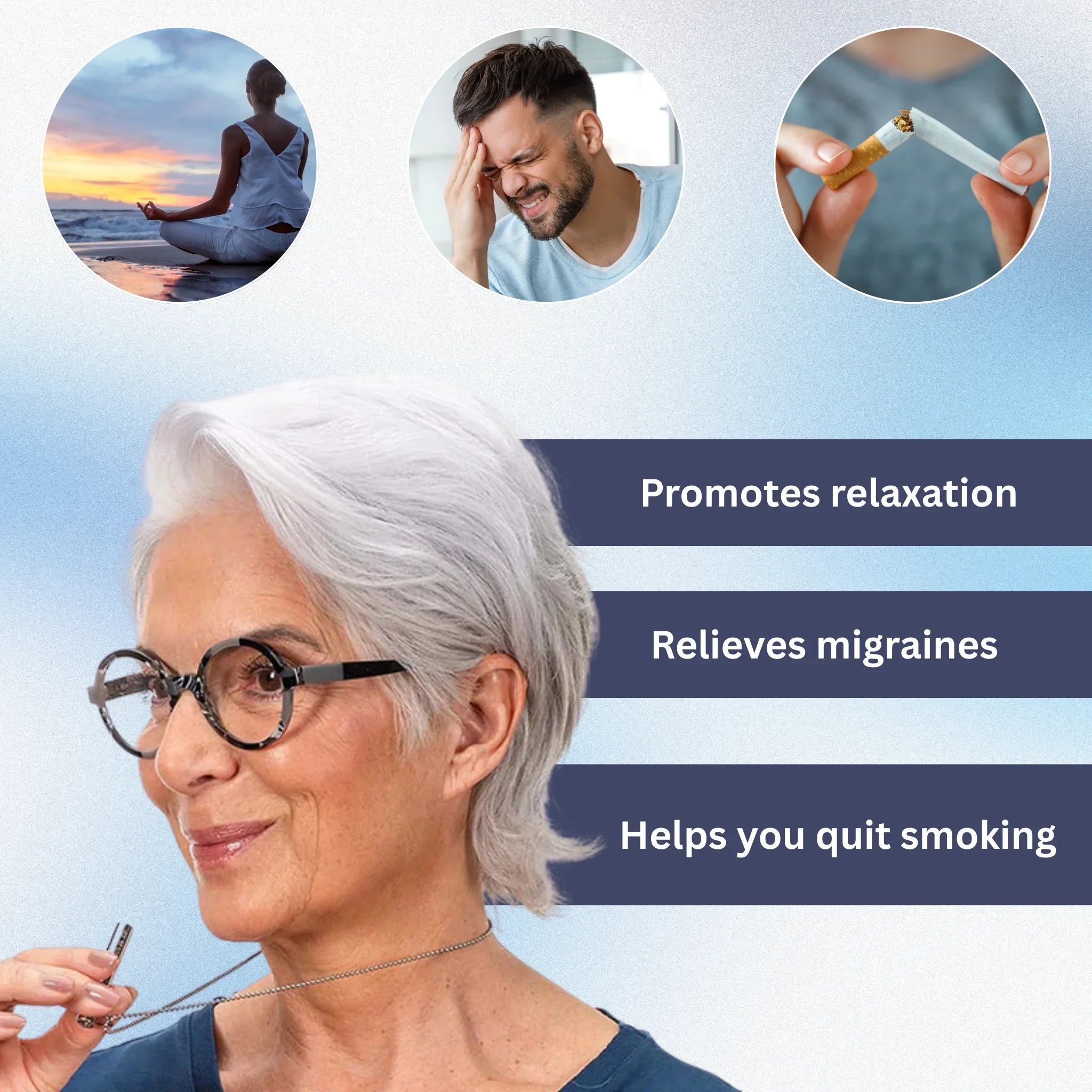 The VagoRelax Whistle helps not only with stress and anxiety disorders, but also offers relief from sleep problems, smoking cessation, asthma, digestive issues, and migraines.