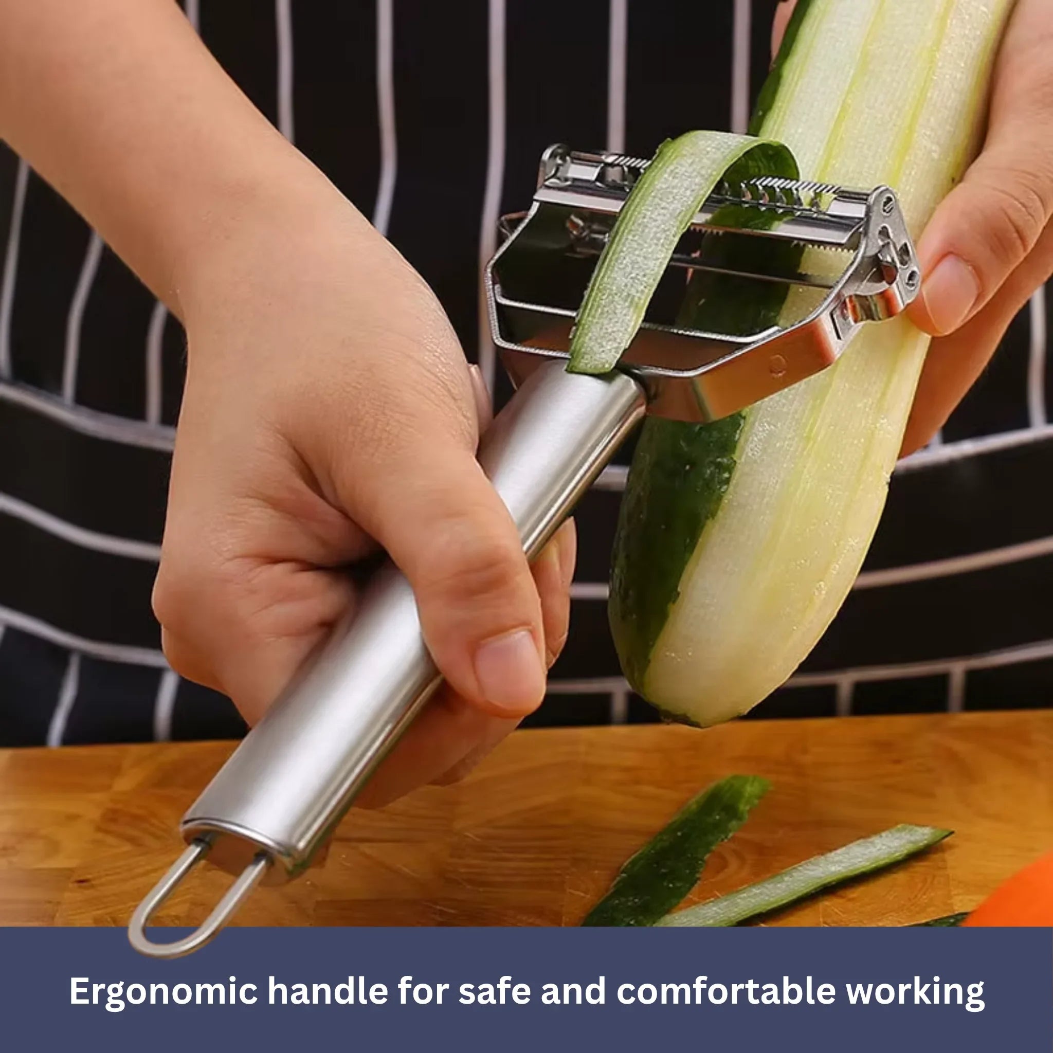 This multifunctional peeler, made from high-quality stainless steel, combines several functions in one compact tool – perfect for fast and practical kitchen work without unnecessary gadgets.