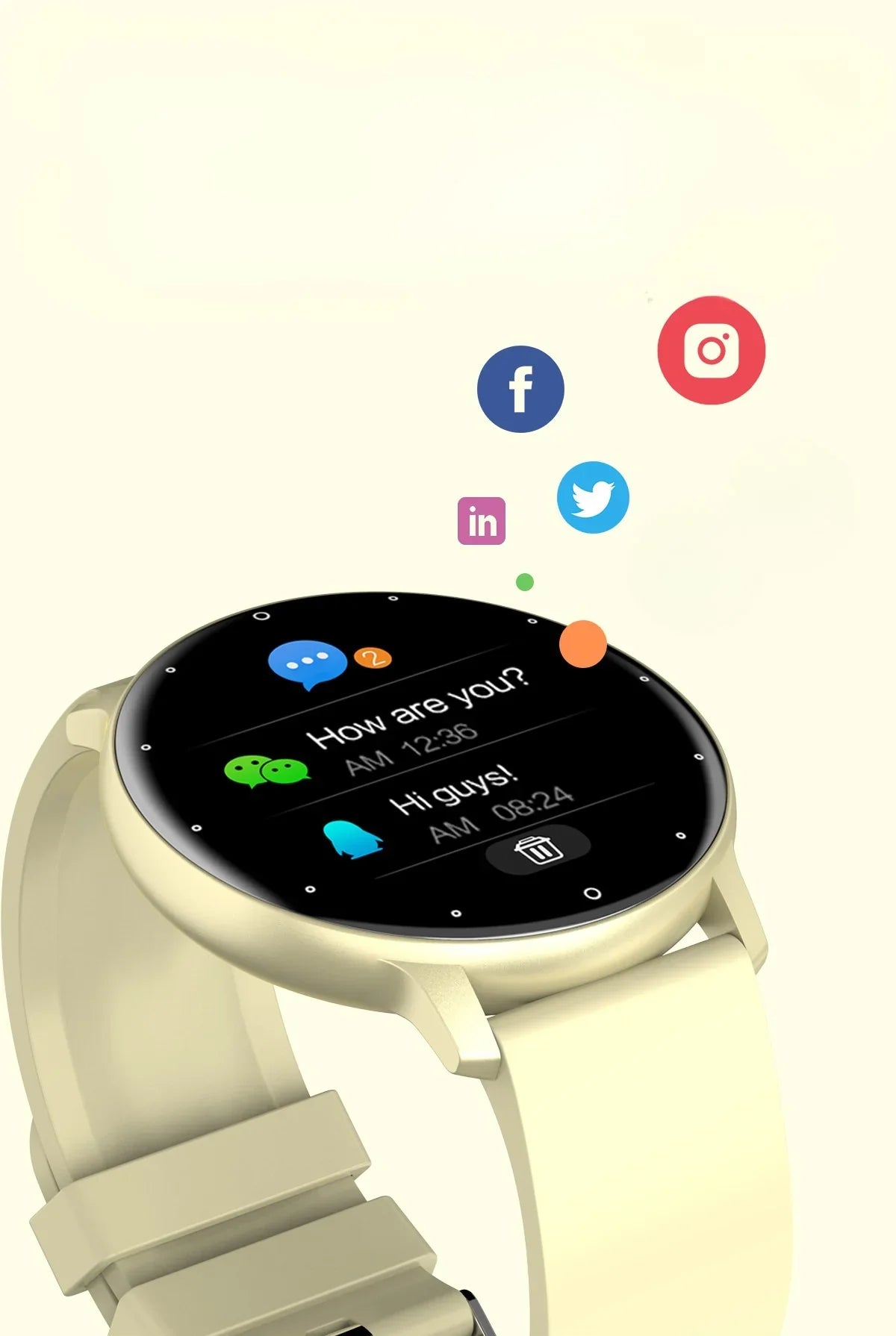 Ja, du erhältst Benachrichtigungen für Anrufe, SMS und Apps (z. B. WhatsApp, Facebook, Instagram), kannst aber keine Anrufe direkt über die Uhr führen.