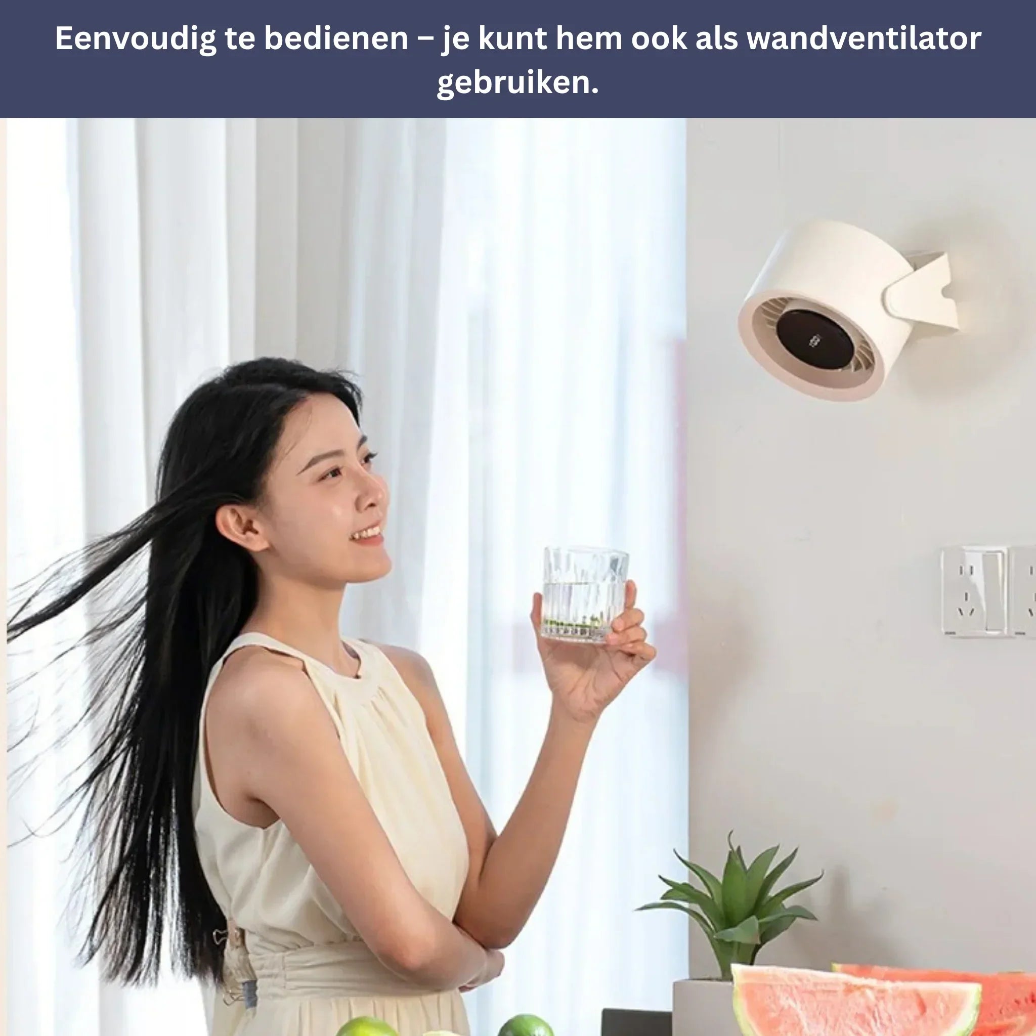 Ja, de montage is heel eenvoudig. Haken zijn inbegrepen, en de ventilator kan veilig worden bevestigd op tegels, glas of hout.