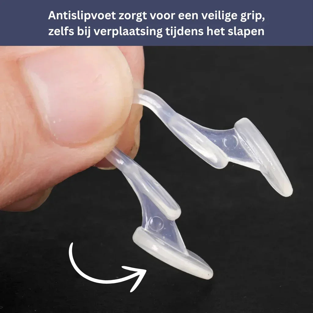 Dankzij de antislipbasis blijft de clip stevig op zijn plek, zelfs als je beweegt in je slaap.