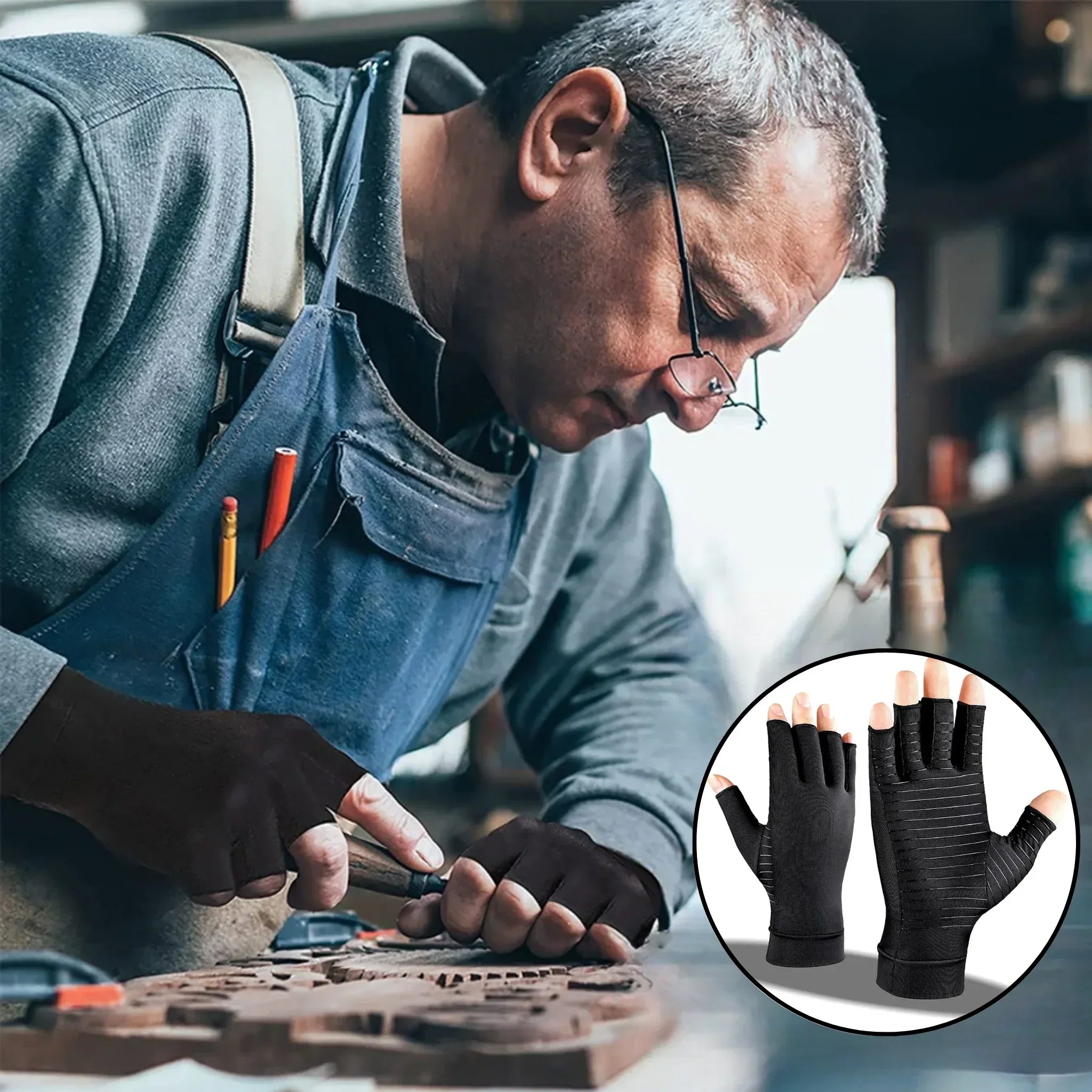 Voel het verschil van 's ochtends tot 's avonds met koper-geïnfuseerde compressiehandschoenen die werken terwijl jij bezig bent.