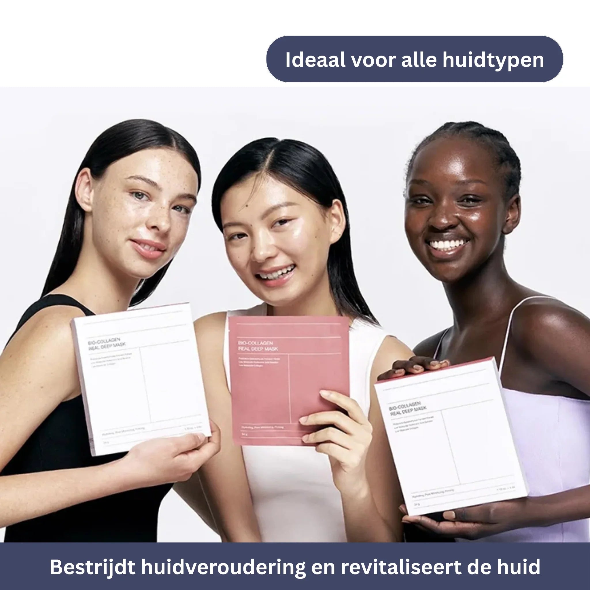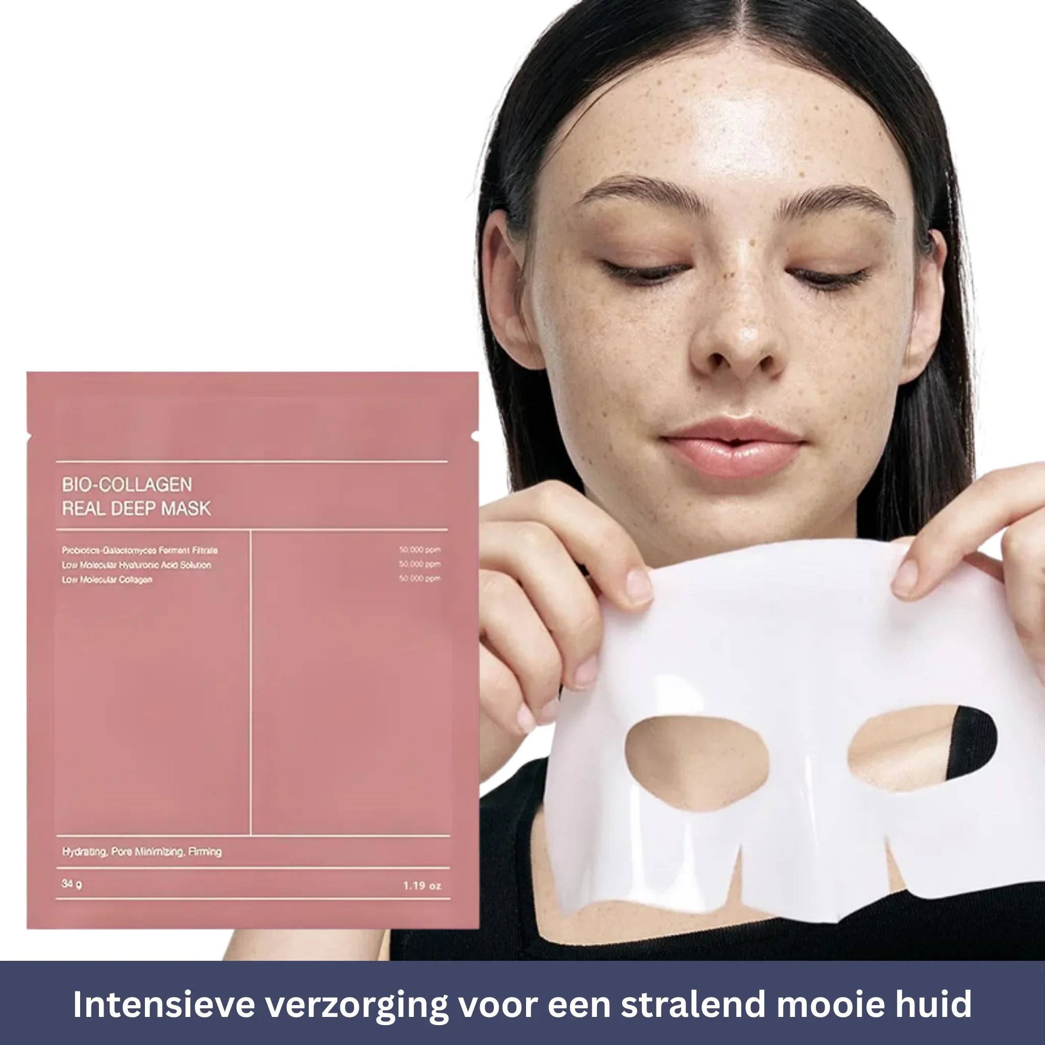 De Bio Collageen Gezichtsmasker is ideaal voor elke huid en helpt verouderingstekenen te verzachten en de huid te revitaliseren.