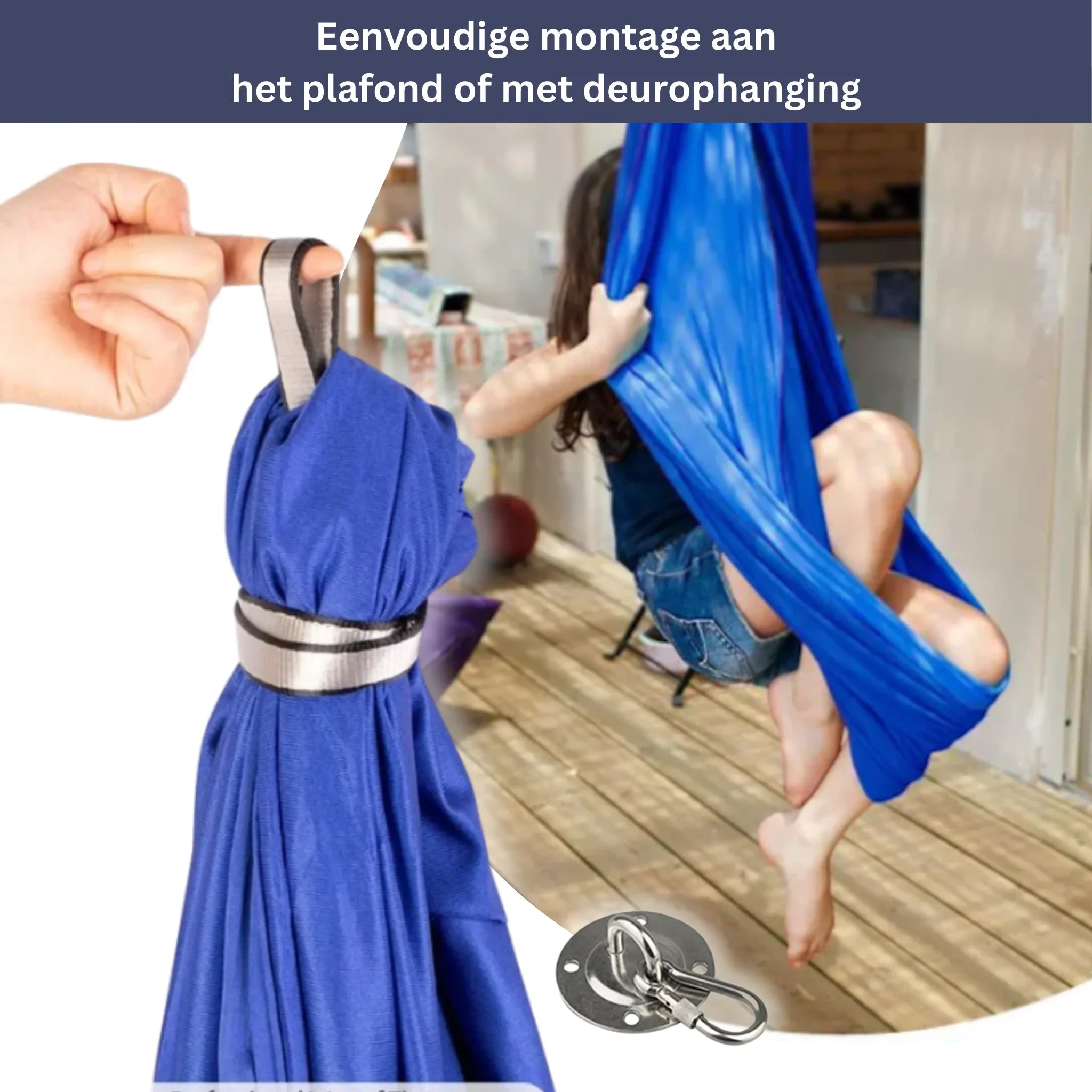 De schommel is eenvoudig te bevestigen aan het plafond of met een deurbevestiging.