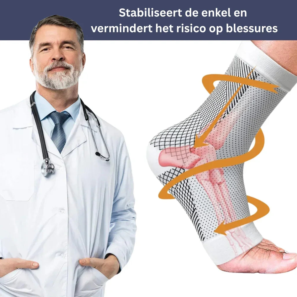 Orthopeden en fysiotherapeuten bevelen de Comfy-kousen aan vanwege hun gerichte compressie en hoogwaardige afwerking voor effectieve ondersteuning en genezing van enkelproblemen.