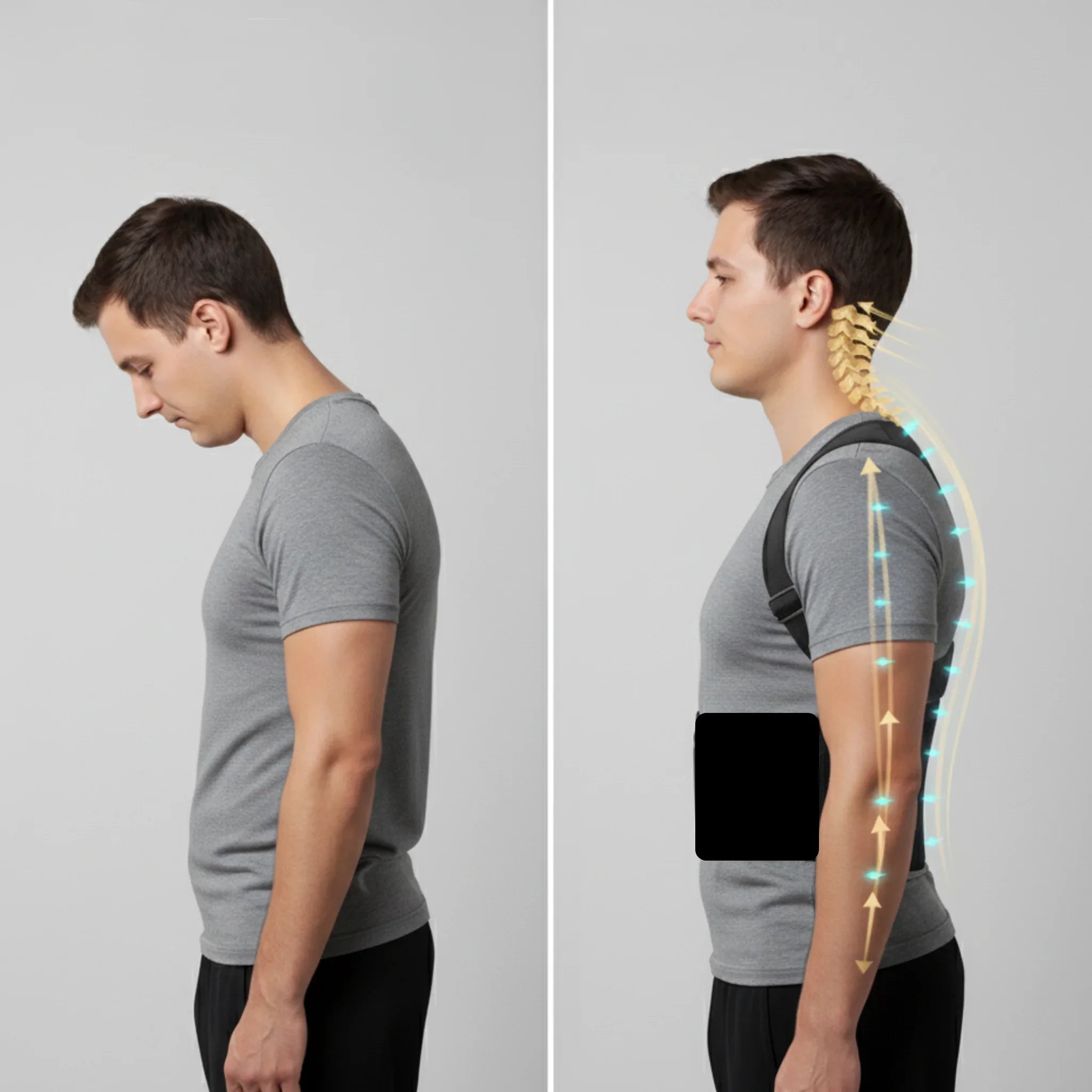 Of het nu in het dagelijks leven, tijdens het sporten of op het werk is, hij richt je schouders en rug zachtjes op en kan klachten verlichten die ontstaan door een verkeerde houding of blessures.