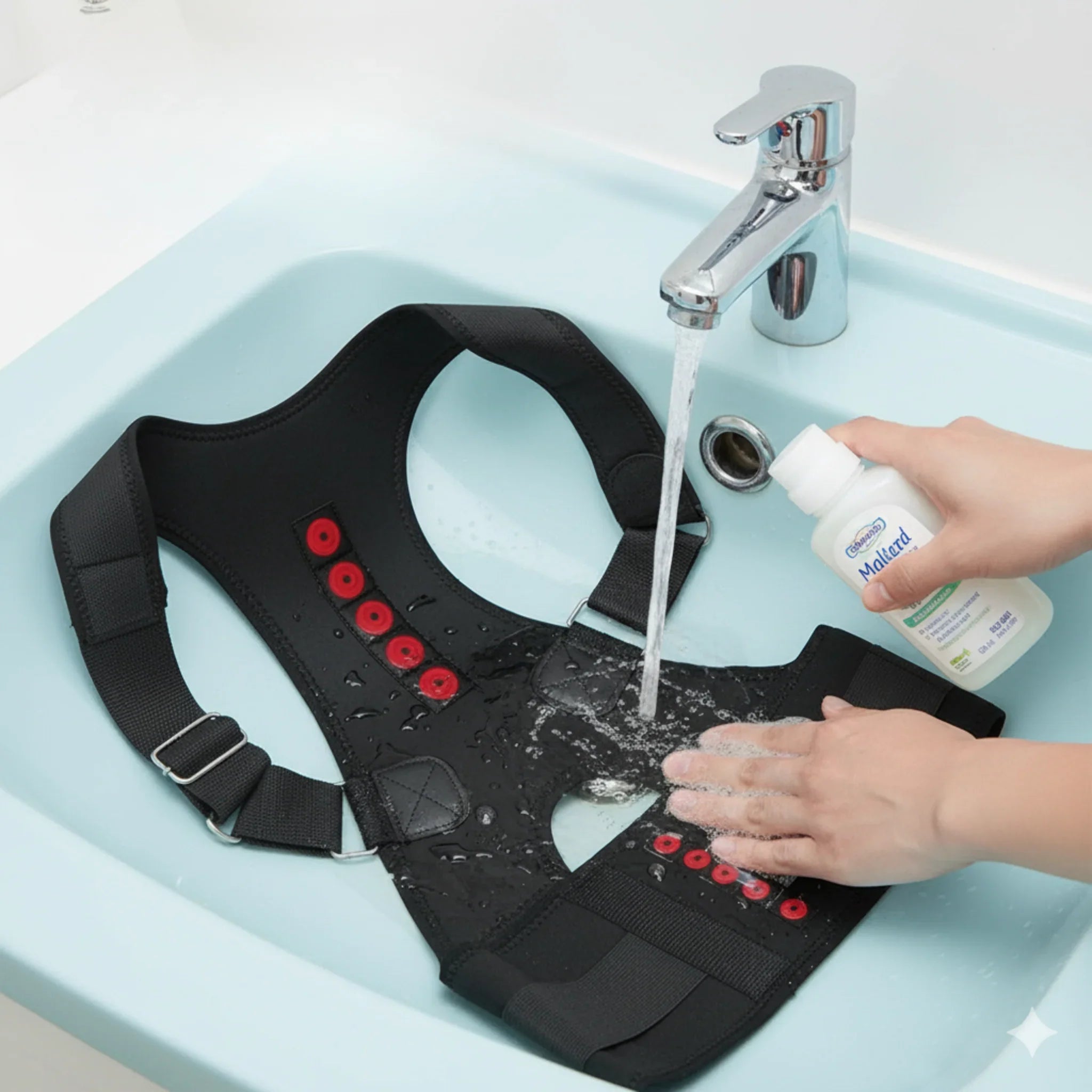 De rugbrace kan eenvoudig met de hand worden gewassen in koud water met een mild wasmiddel.