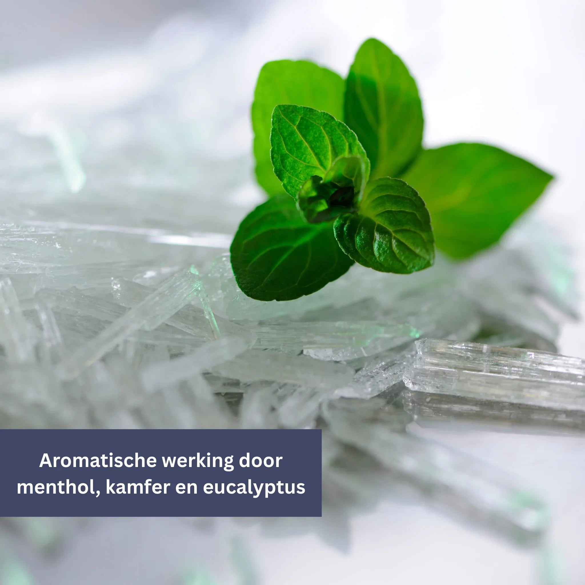 De aanwezige etherische oliën, zoals menthol en kamfer, stimuleren de doorbloeding, verminderen spierspanning en zorgen voor merkbare verlichting.