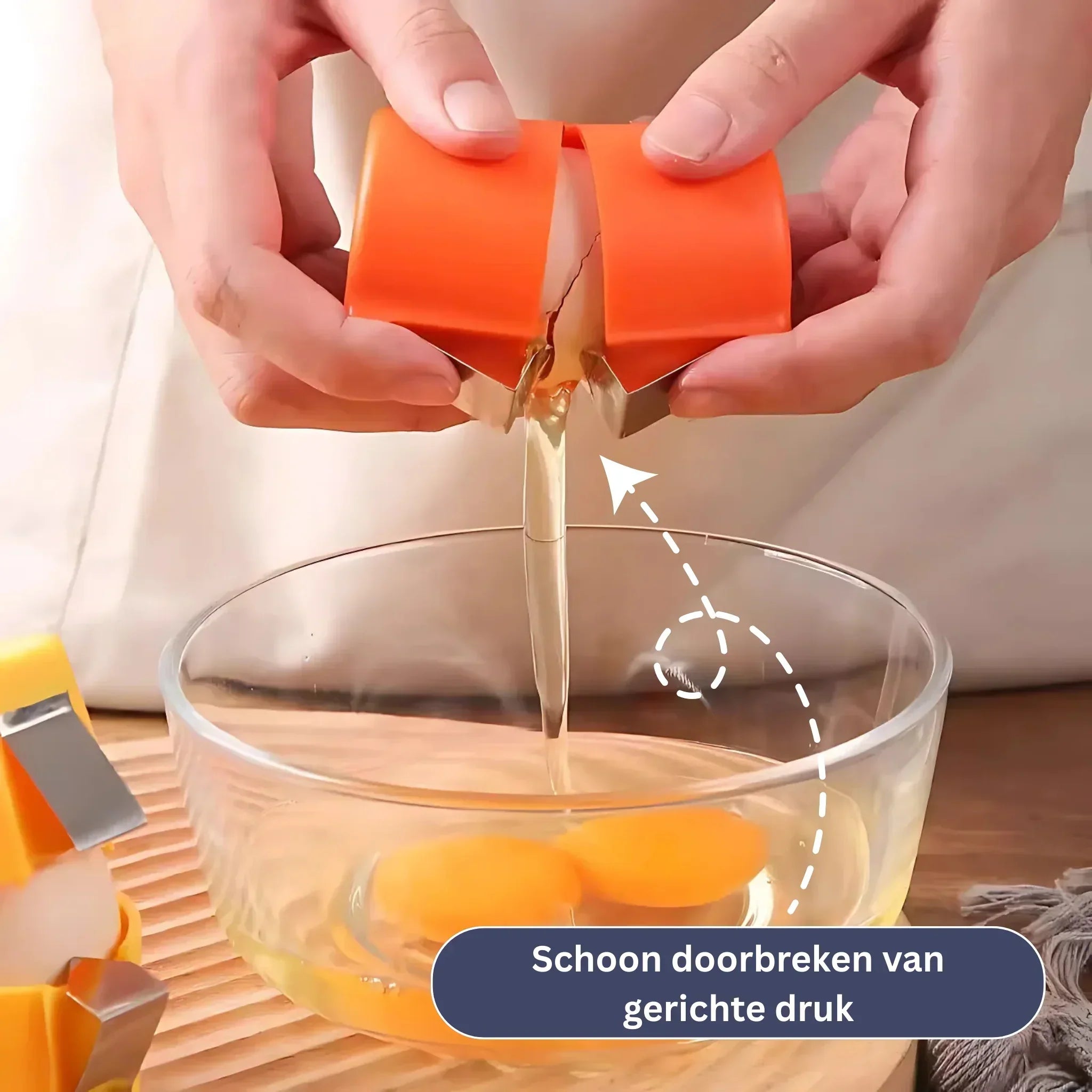 Met slechts één handeling open je rauwe eieren betrouwbaar en hygiënisch – zonder plakkerige vingers, schelpresten of onnodig geknoei.