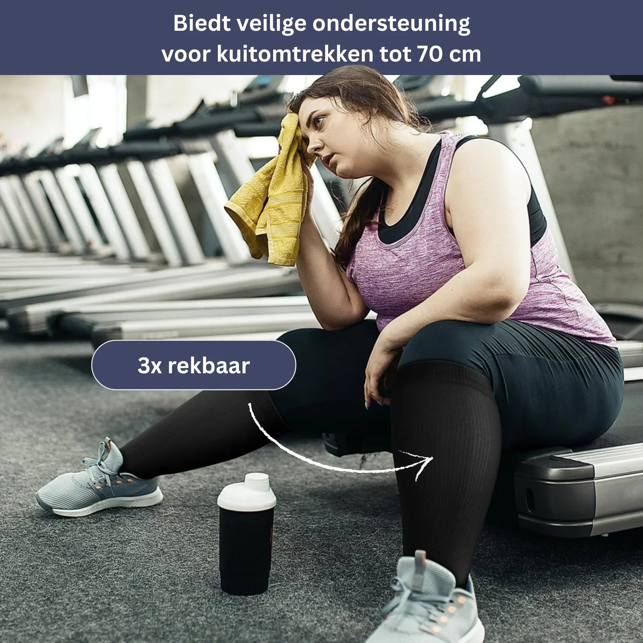 Ze zijn tot 3× rekbaarder dan standaard modellen en bieden ook bij stevige kuiten een veilige pasvorm zonder knelling.