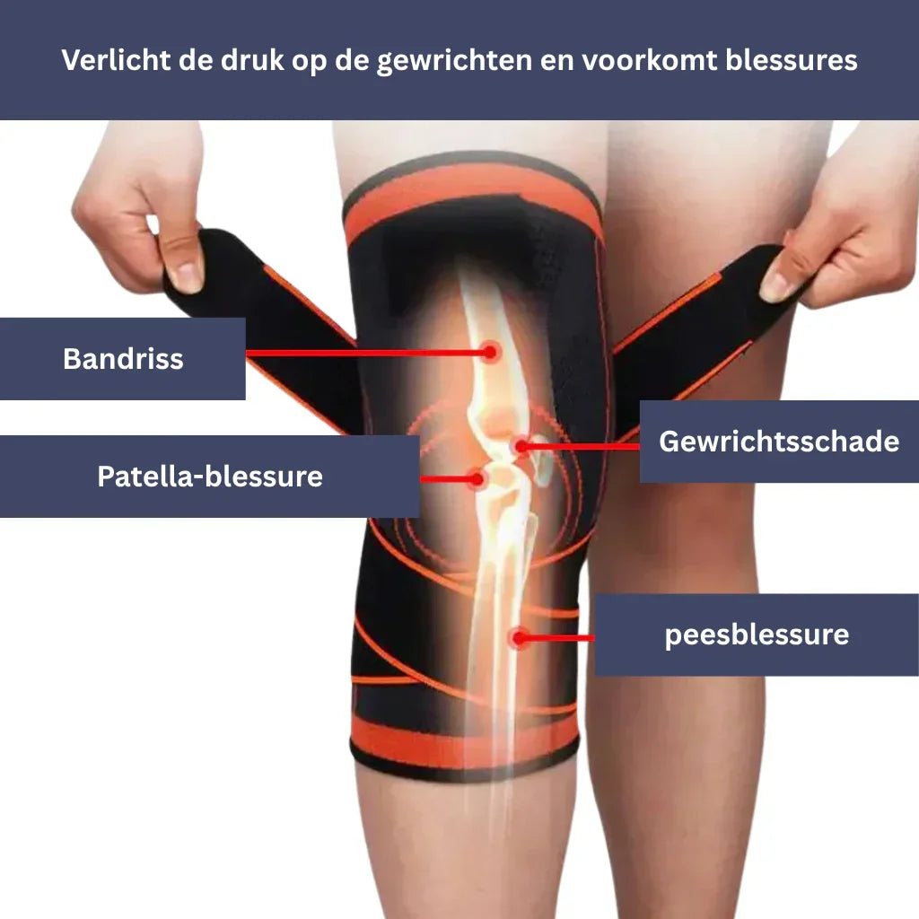 De gelijkmatige drukverdeling vergroot de stabiliteit van de knieschijf en beschermt je knie op een effectieve manier.