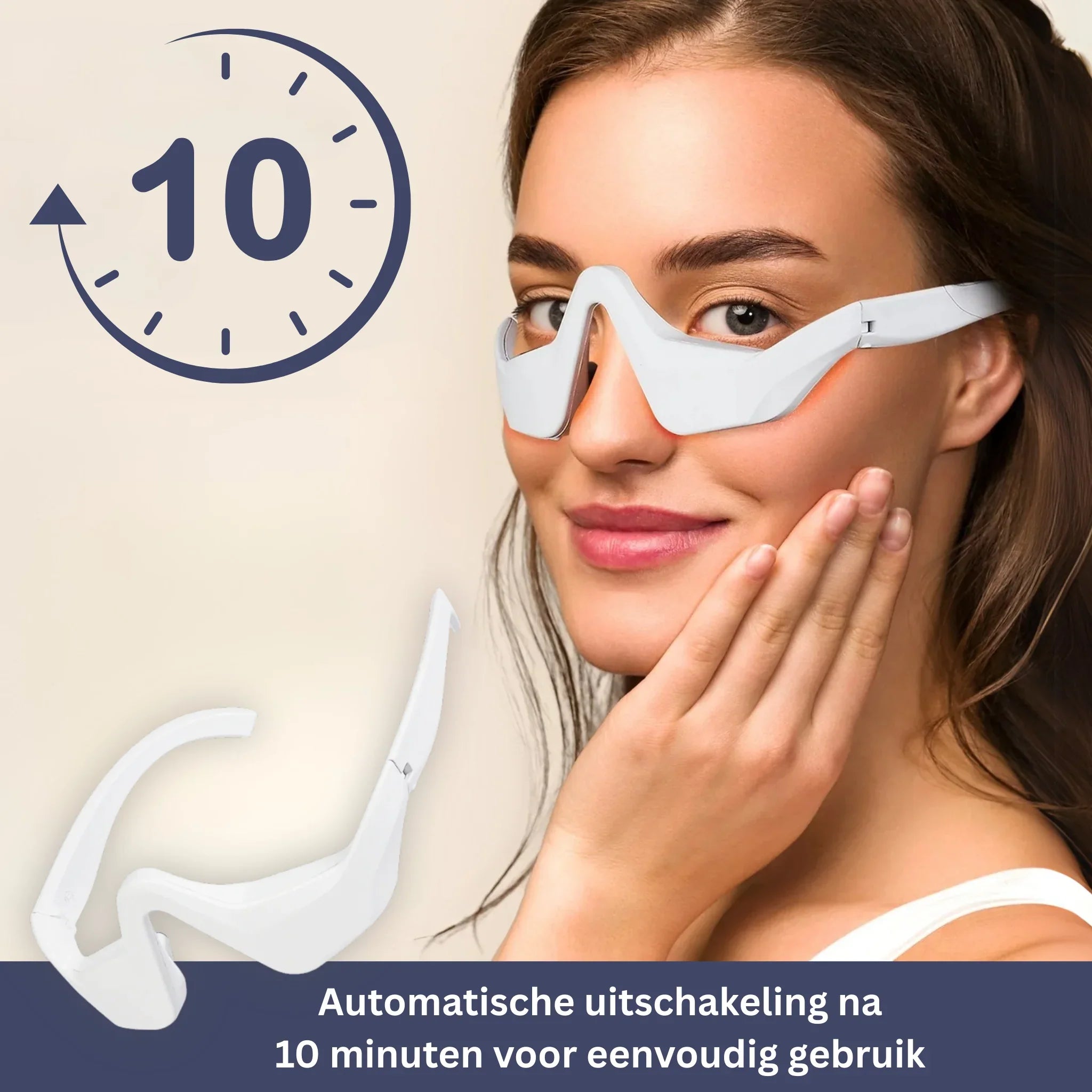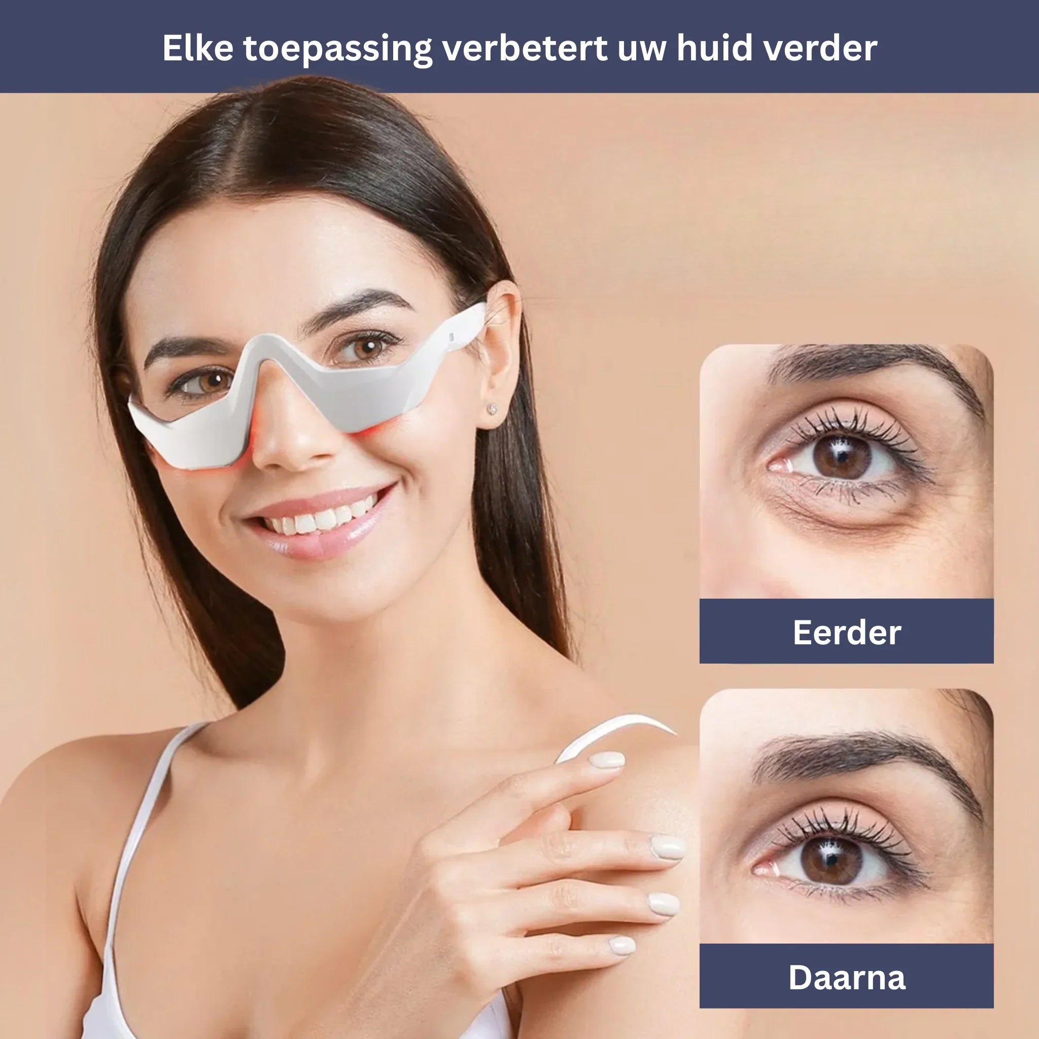 GlowEye combineert elektrospierstimulatie (EMS) met rood licht om donkere kringen, zwellingen en fijne lijntjes te bestrijden.