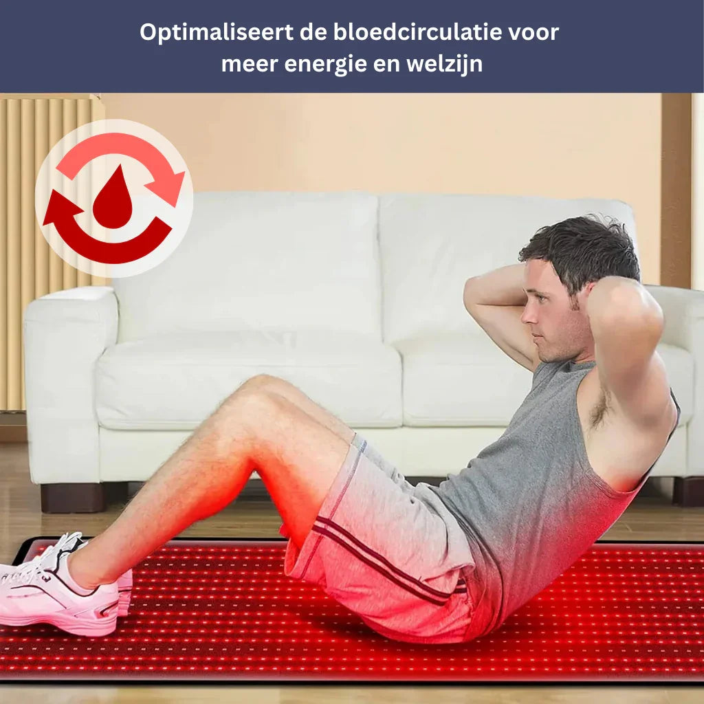 De mat maakt gebruik van een combinatie van rood en nabij-infrarood licht, dat diep in je huid en weefsels doordringt.