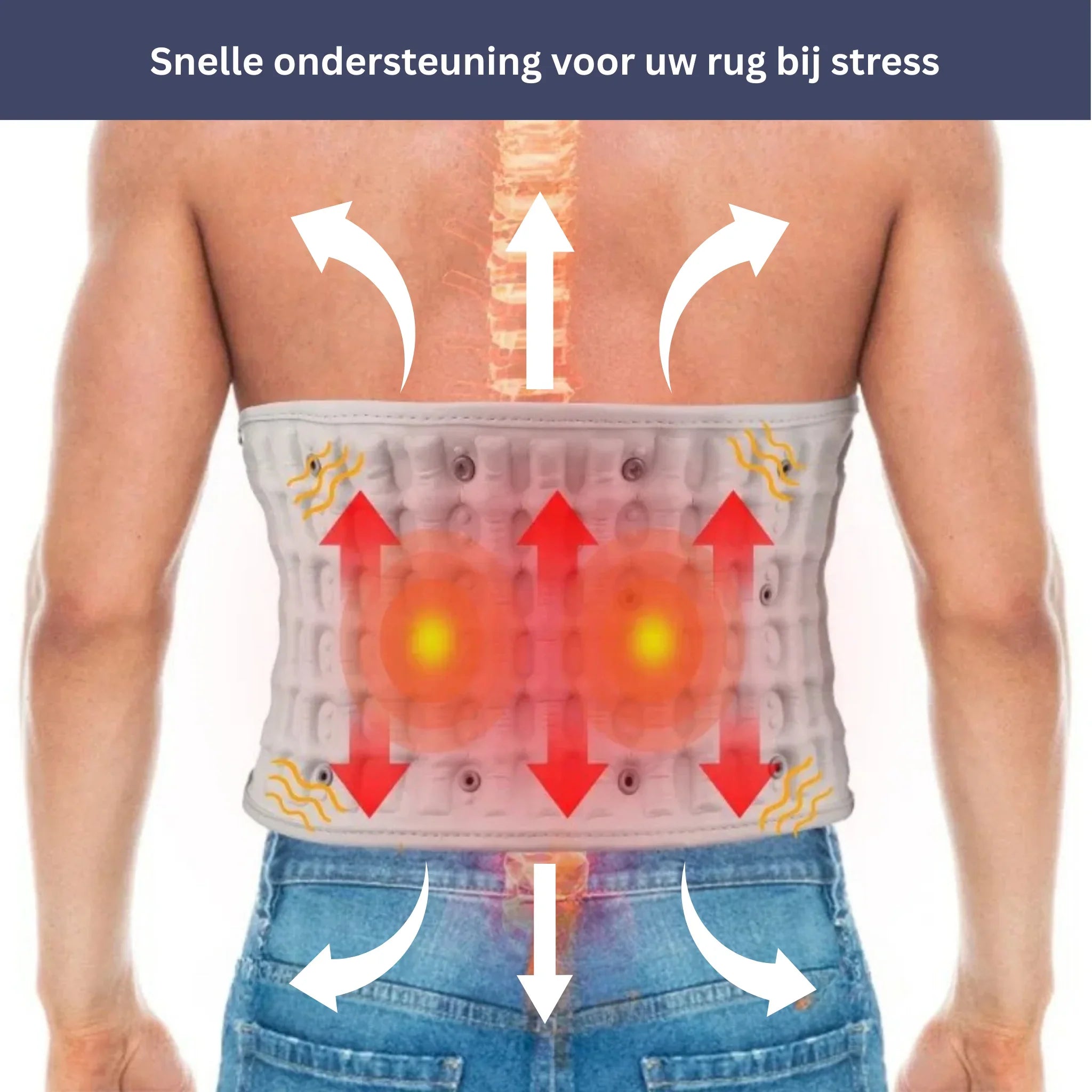 De LumbaraFit band biedt gerichte verlichting door opblaastechnologie, warmte en massage.