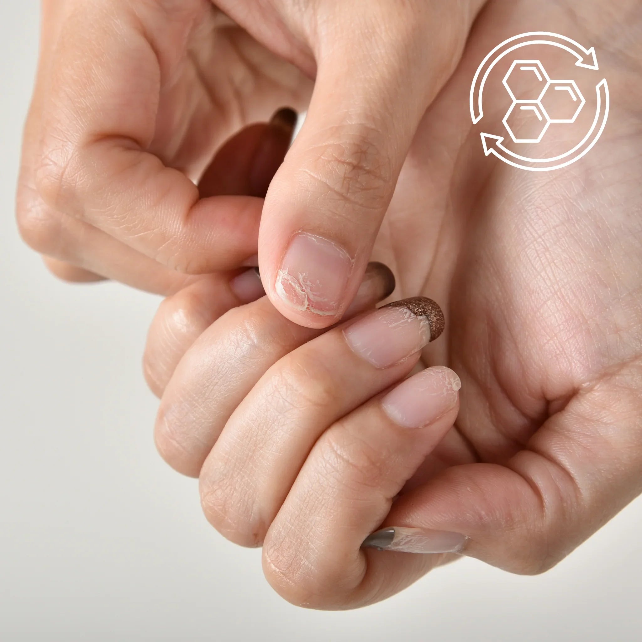 Hierdoor krijgen je nagels geleidelijk hun natuurlijke kleur, elasticiteit en gladde oppervlak terug – zonder agressieve toevoegingen of irriterende stoffen.