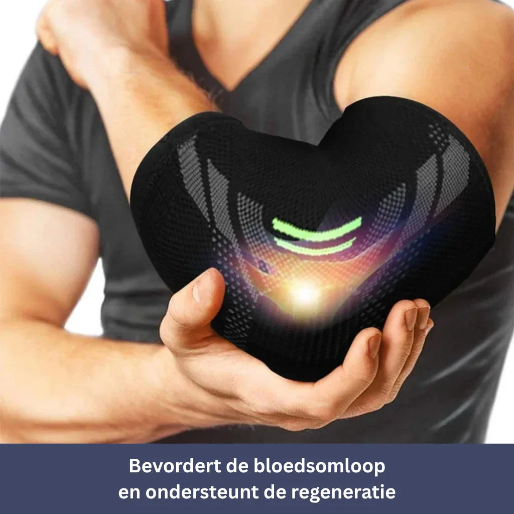 De bandage oefent milde druk uit op het ellebooggewricht, bevordert de bloedcirculatie en ondersteunt het herstel.