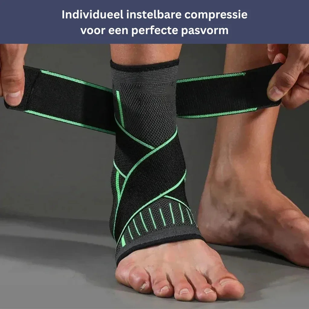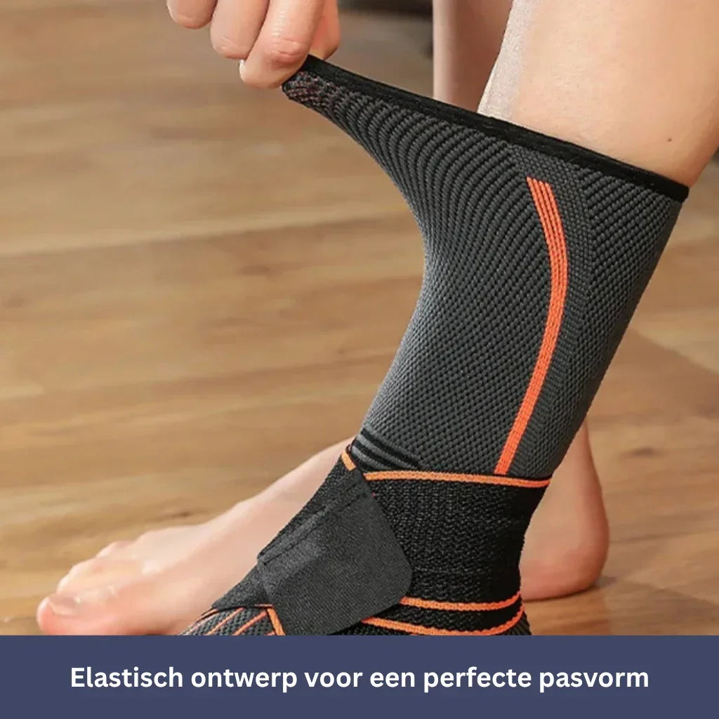 Het elastische ontwerp van de bandage past zich perfect aan je enkel aan en zorgt voor een veilige pasvorm die niet verschuift.