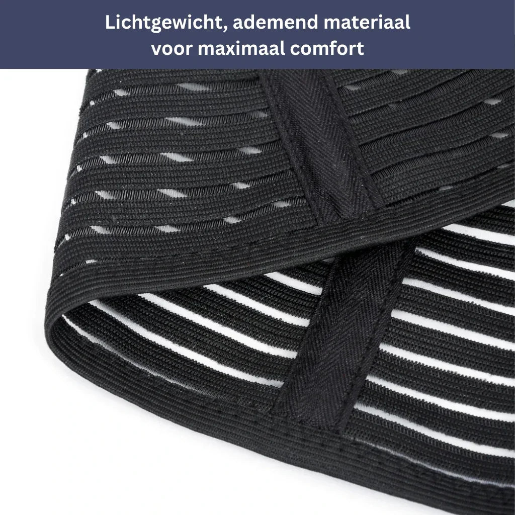 De band biedt gerichte ondersteuning voor je buik en rug door de belasting gelijkmatig te verdelen en zo rug- en buikpijn te verlichten.
