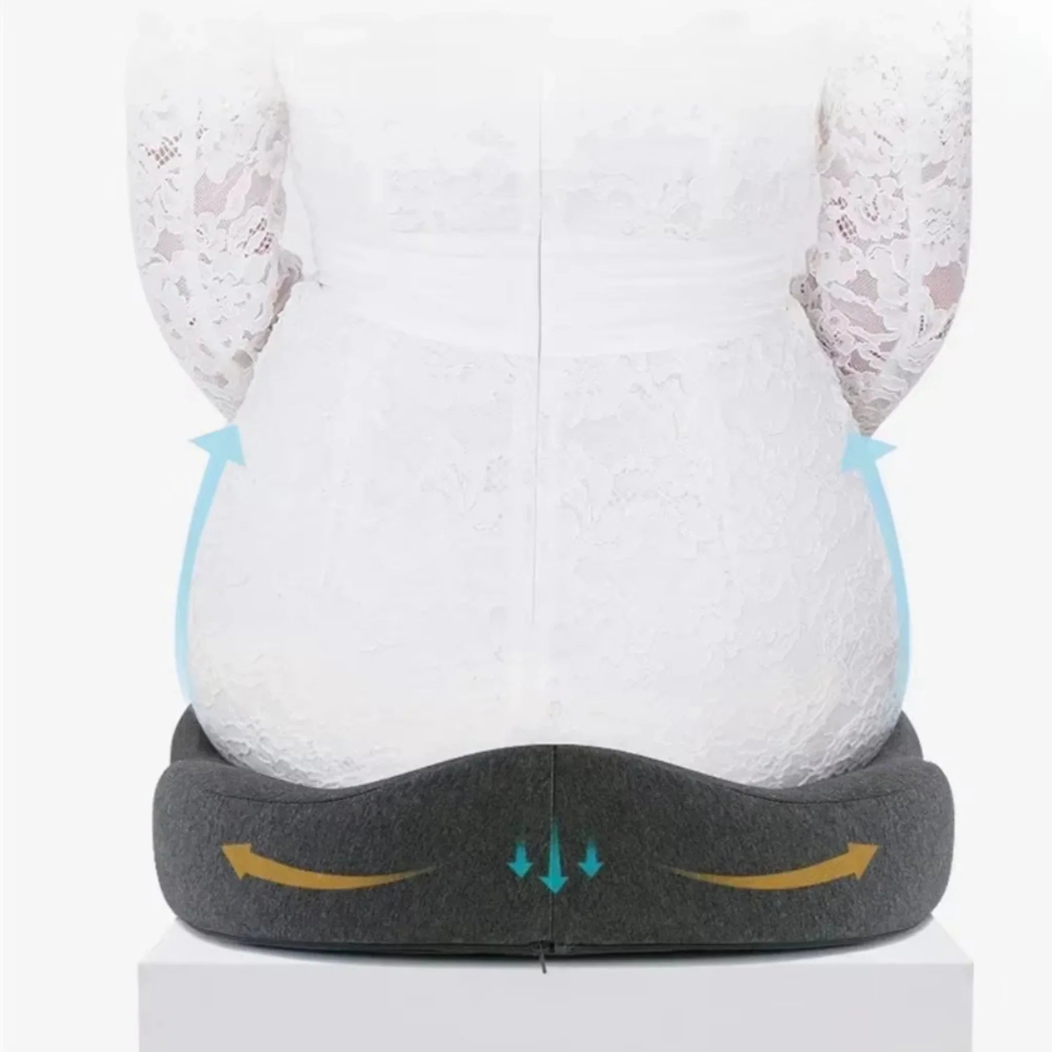 Het zitkussen beschermt het stuitje, stabiliseert het bekken en zorgt voor een gezonde uitlijning van de wervelkolom.
