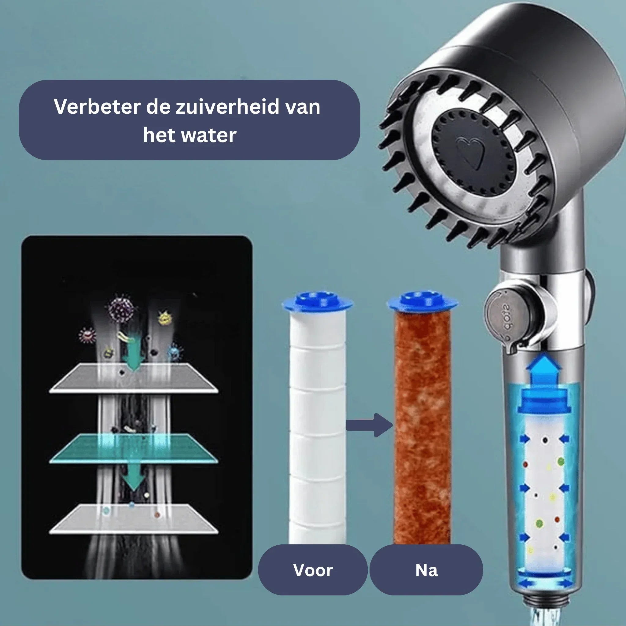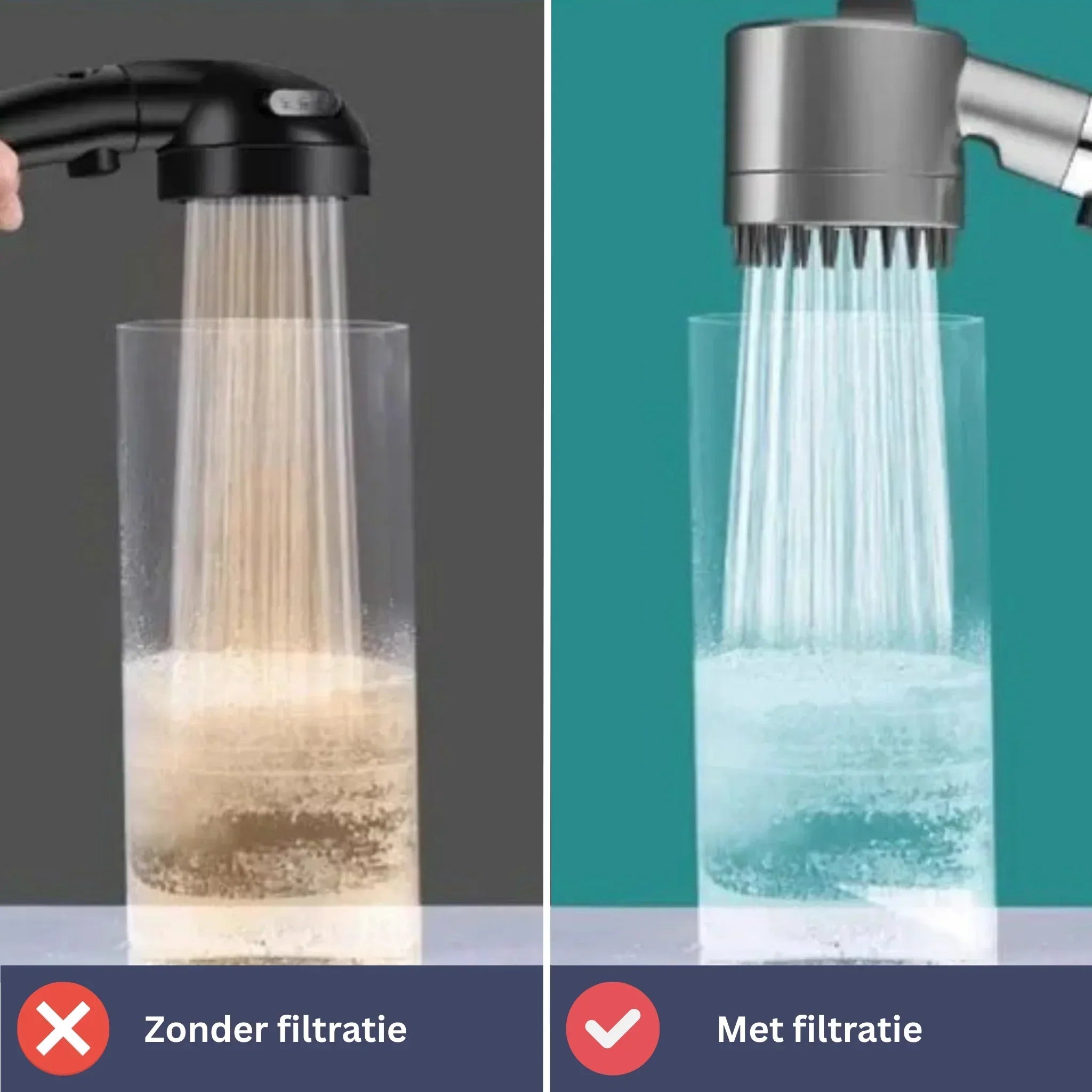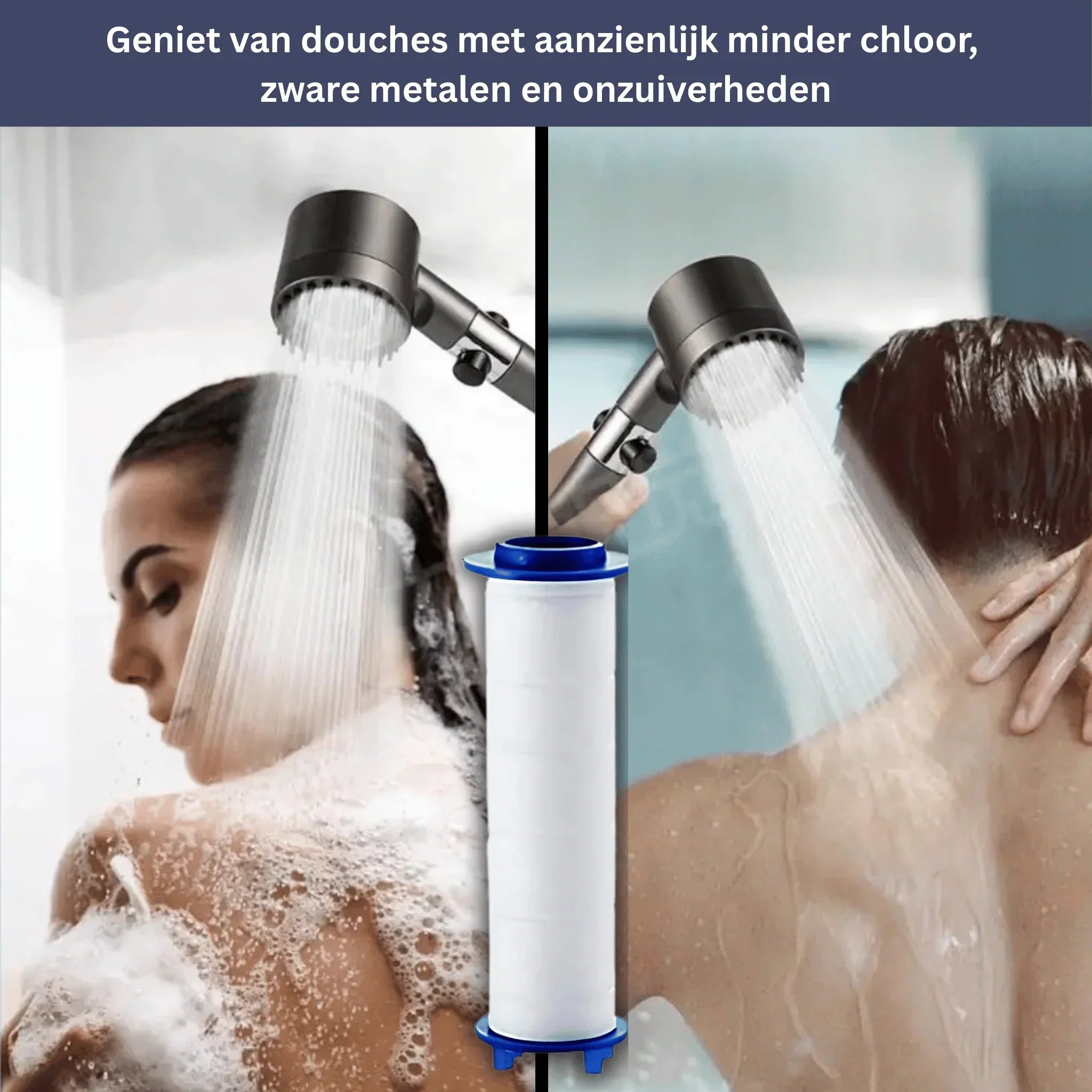 De filters verminderen chloor, zware metalen en onzuiverheden, zodat je huid en haar beschermd blijven tegen droogheid en irritaties.