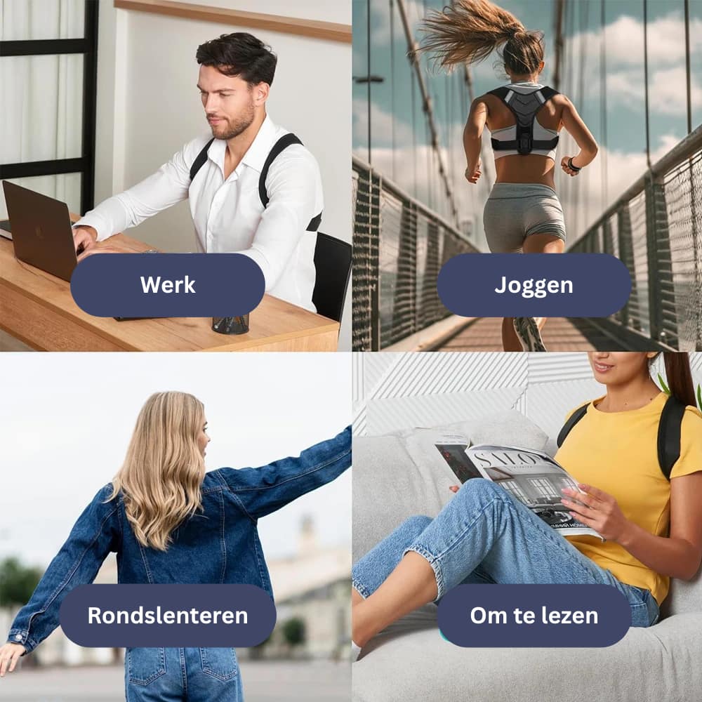 Na verloop van tijd kun je de draagtijd langzaam verhogen om je houdingsgewoonten blijvend te verbeteren.