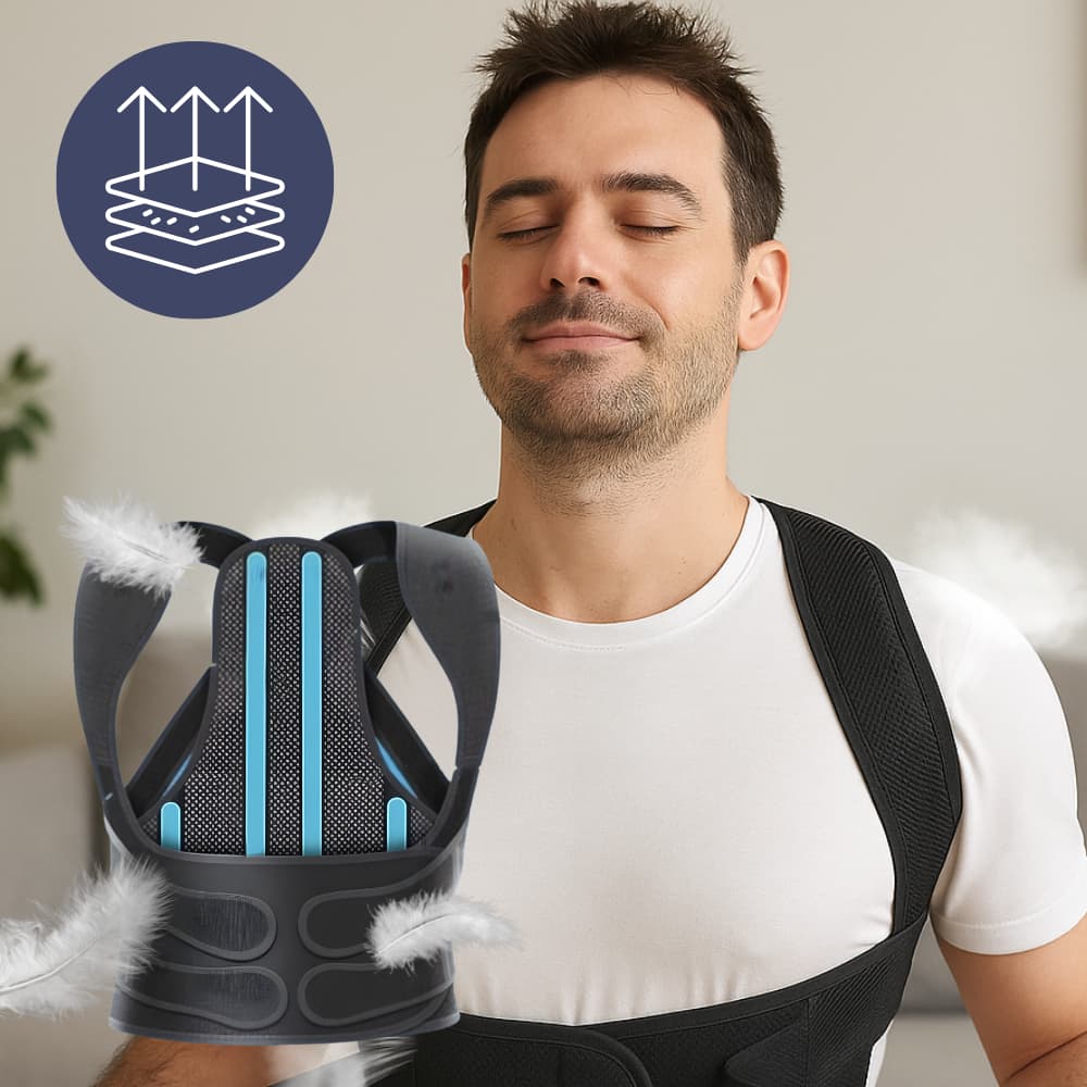Hij richt je wervelkolom zachtjes op, verlicht spanning in schouders en nek en helpt je om blijvend een natuurlijke, zelfverzekerde houding aan te nemen.