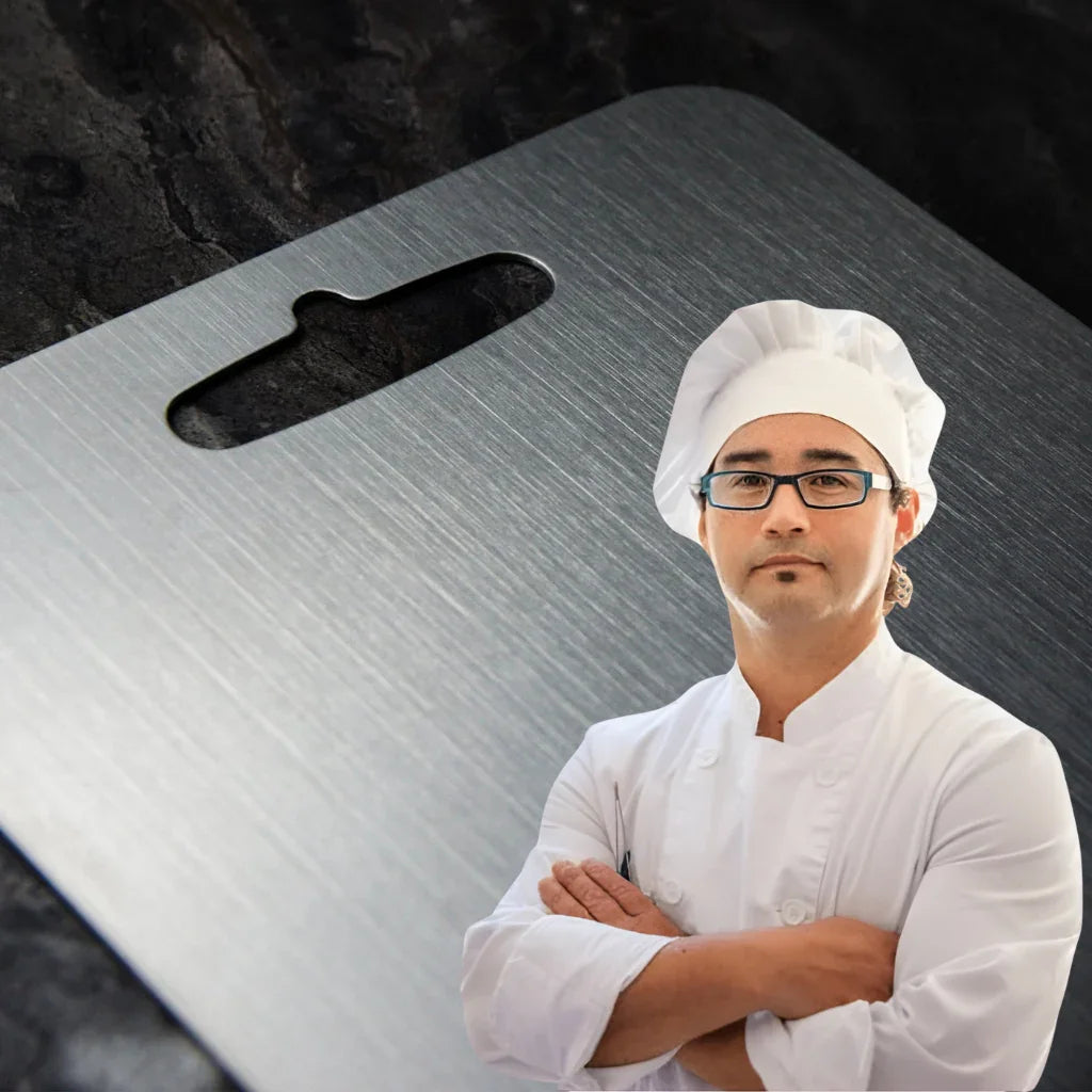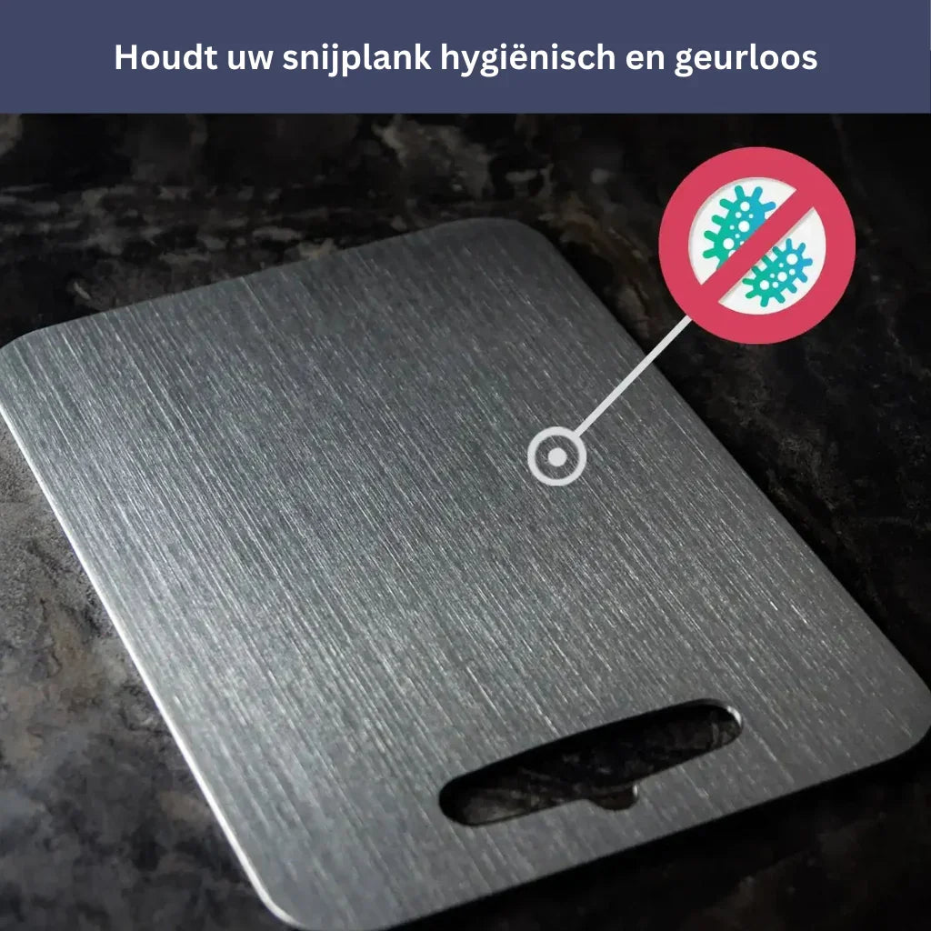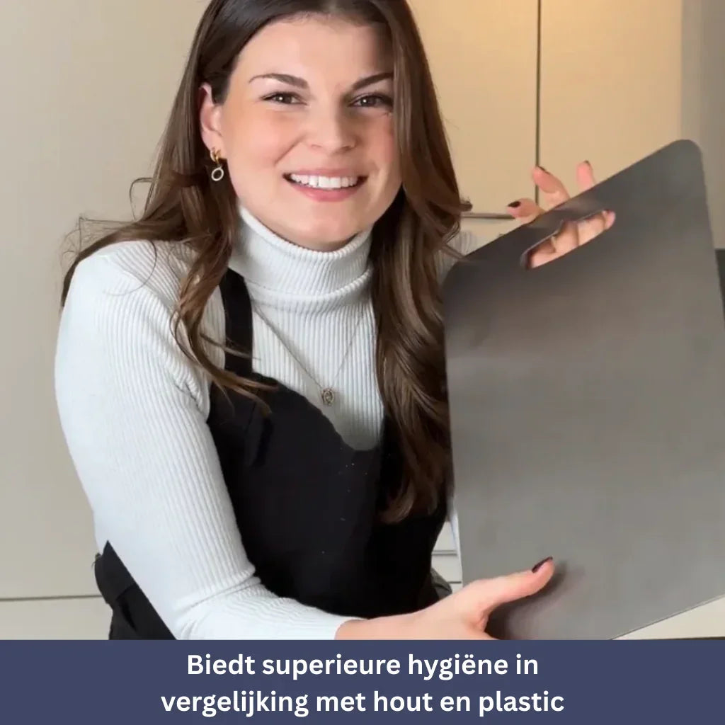 Gemaakt van 100% roestvrij staal combineert deze snijplank duurzaamheid met hygiënische voordelen en overtreft hij traditionele snijplanken op elk vlak.