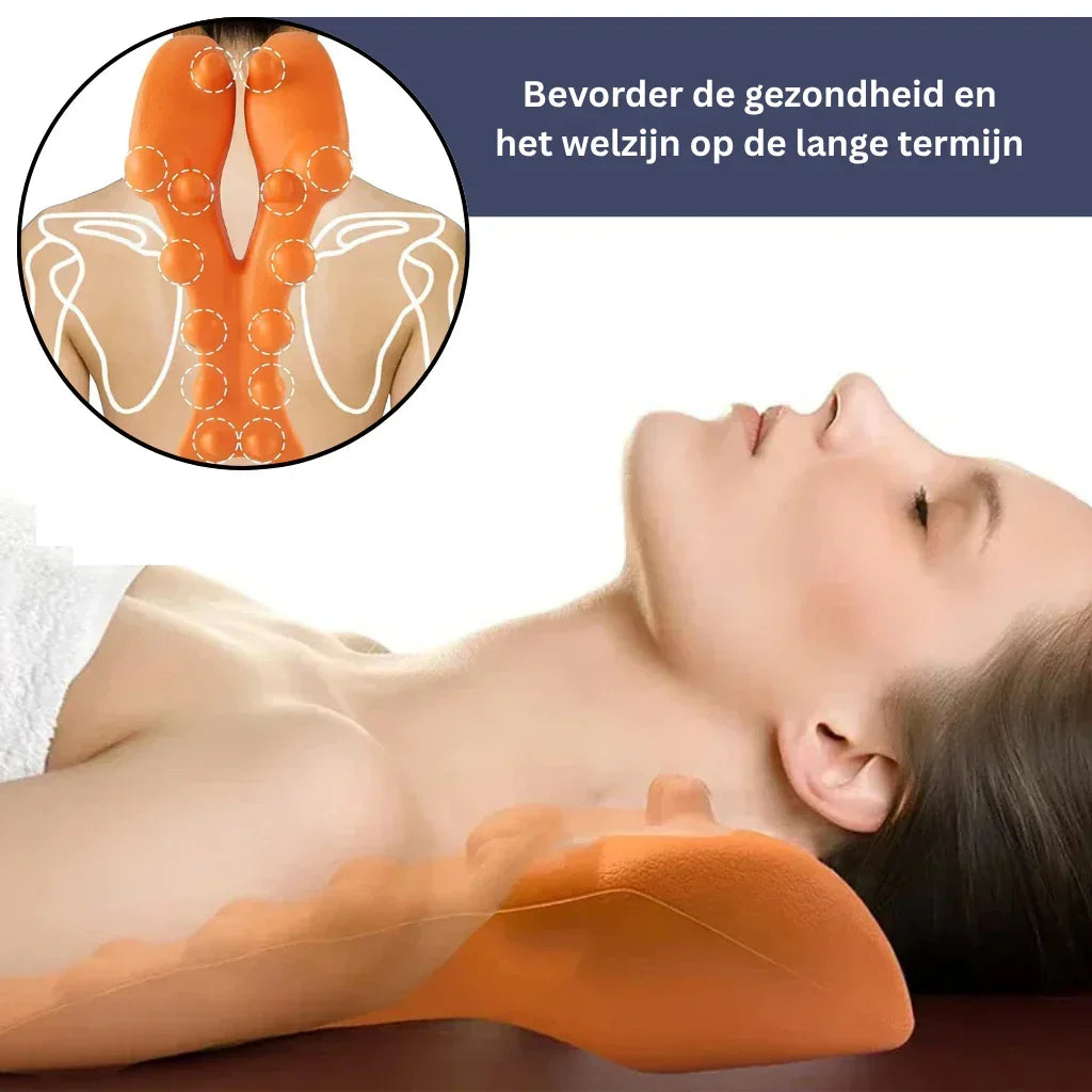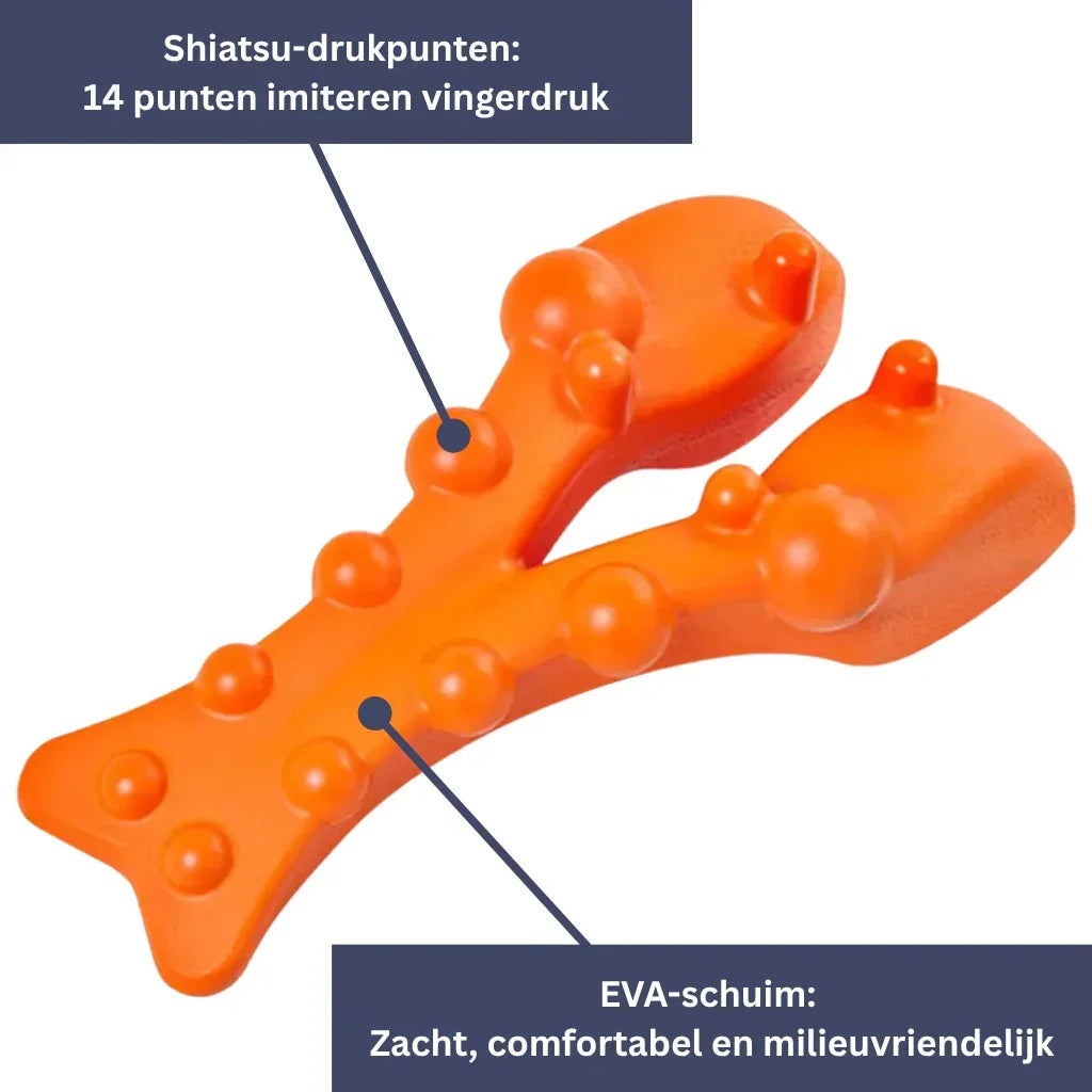 Ontwikkeld door toonaangevende chiropractors, richt dit innovatieve apparaat zich rechtstreeks op 14 triggerpunten in de trapeziusspier – precies daar waar spanningen en spieronevenwichtigheden ontstaan door een moderne levensstijl.