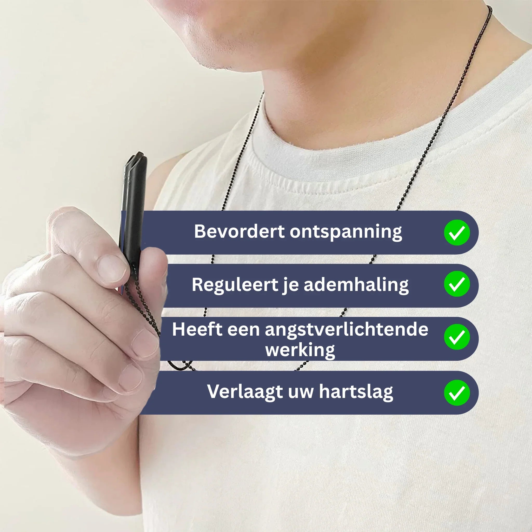 Het gebruik van de VagoRelax fluit reguleert je ademhaling en verlaagt je hartslag.