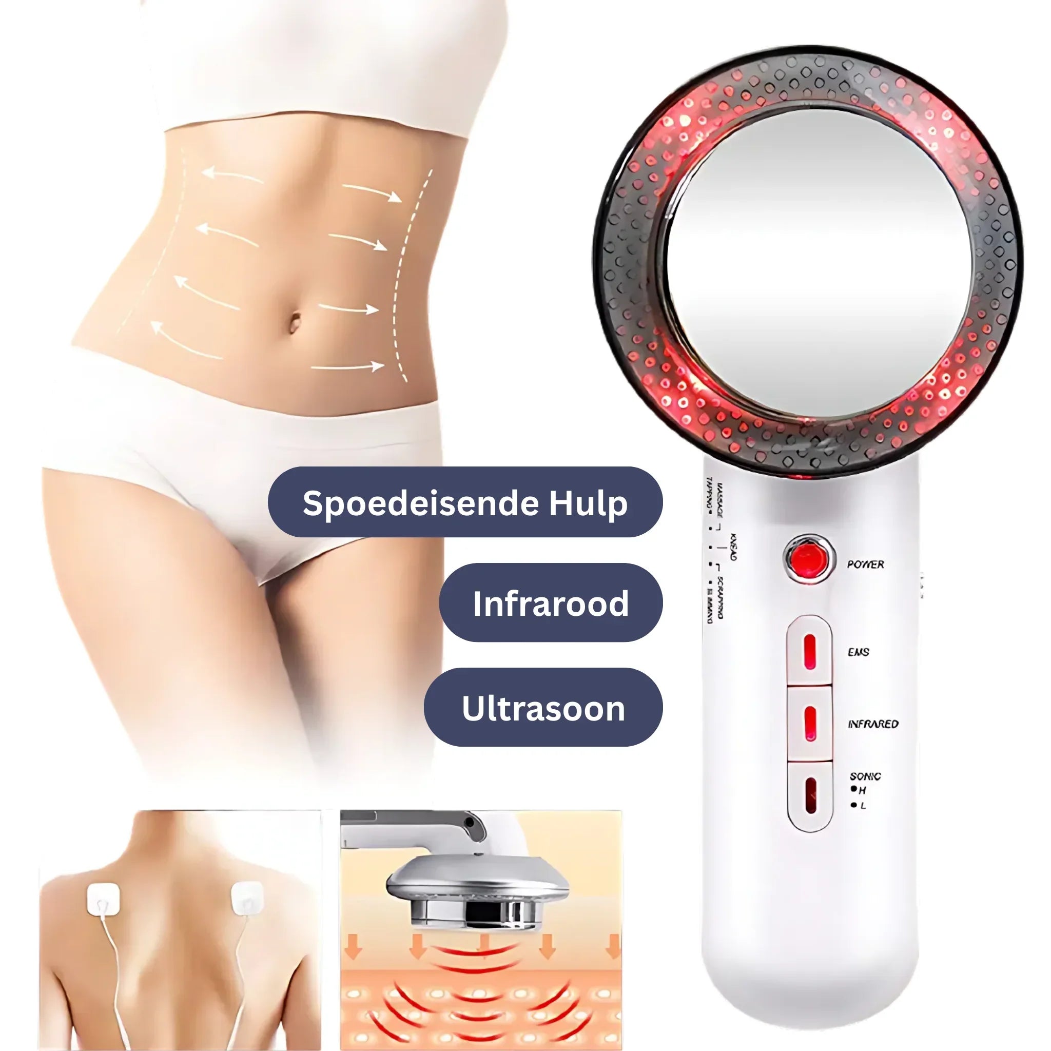 Dankzij de combinatie van ultrageluid, elektrische spierstimulatie en diepwerkende infraroodwarmte bereik je zichtbare resultaten met minimale inspanning.