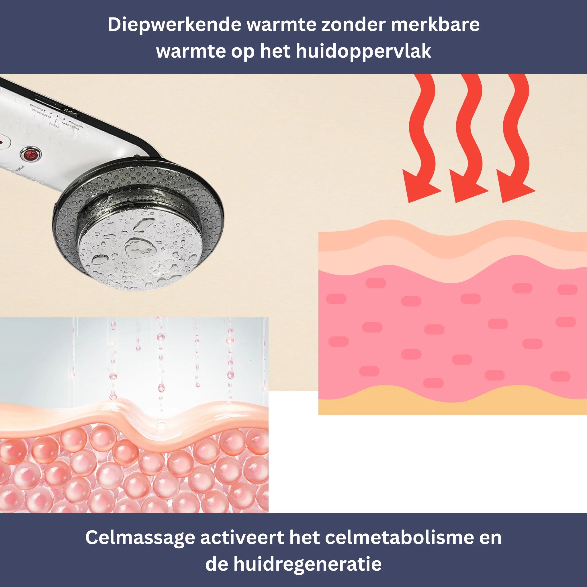 De ultrageluidfunctie masseert je huid op cellulair niveau.