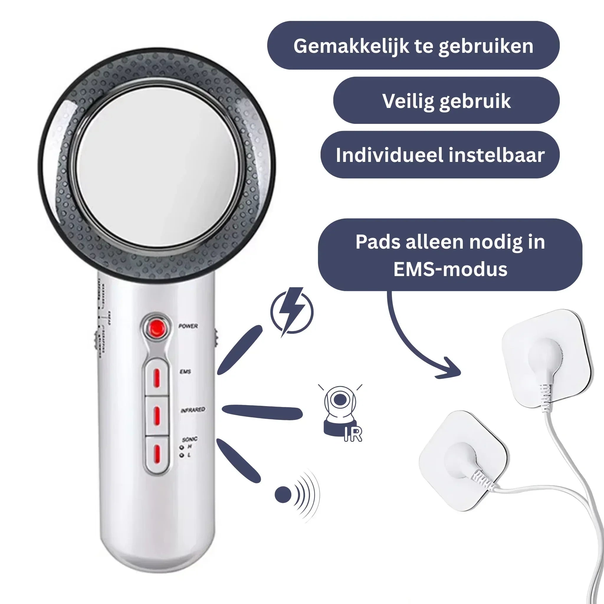 Ja. De ultrageluidmodus werkt zonder elektrodepads, terwijl je voor de EMS-modus de meegeleverde pads correct moet bevestigen.