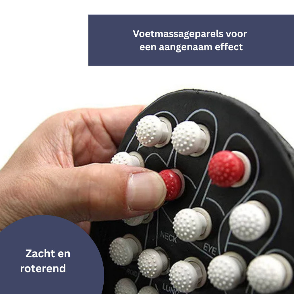 Het waterdichte bovenmateriaal beschermt tegen vocht, terwijl de draaibare massageknoppen zorgen voor een gerichte voetmassage.