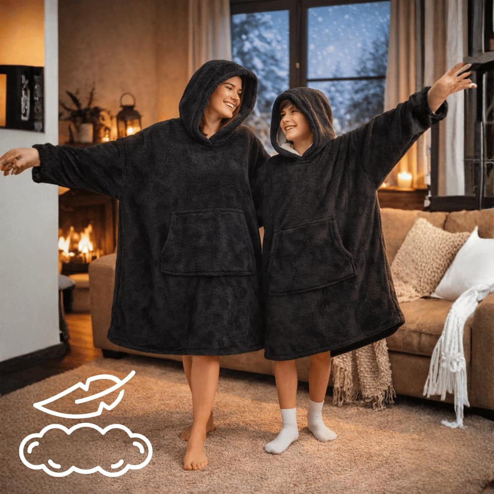 Deze draagbare hoodie deken combineert een hoodie, deken en oversized sweatshirt tot één heerlijk comfortabel kledingstuk.